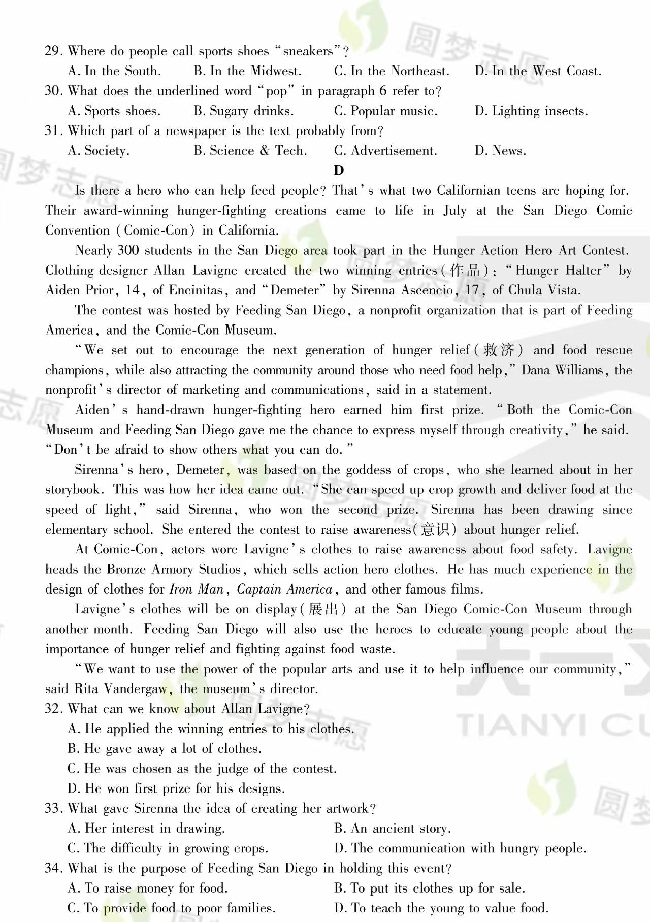 本期将公布天一大联考2022-2023高一二联英语答案及试卷汇总,以便于大家估分,查漏补缺,不断进步,请大家持续关注高考100网站。