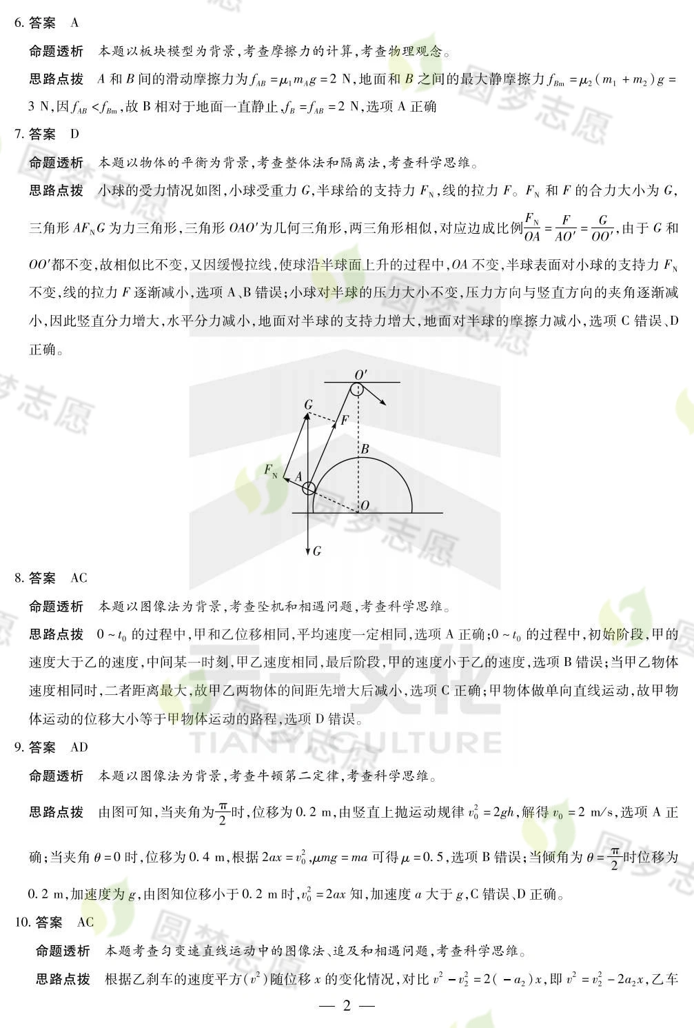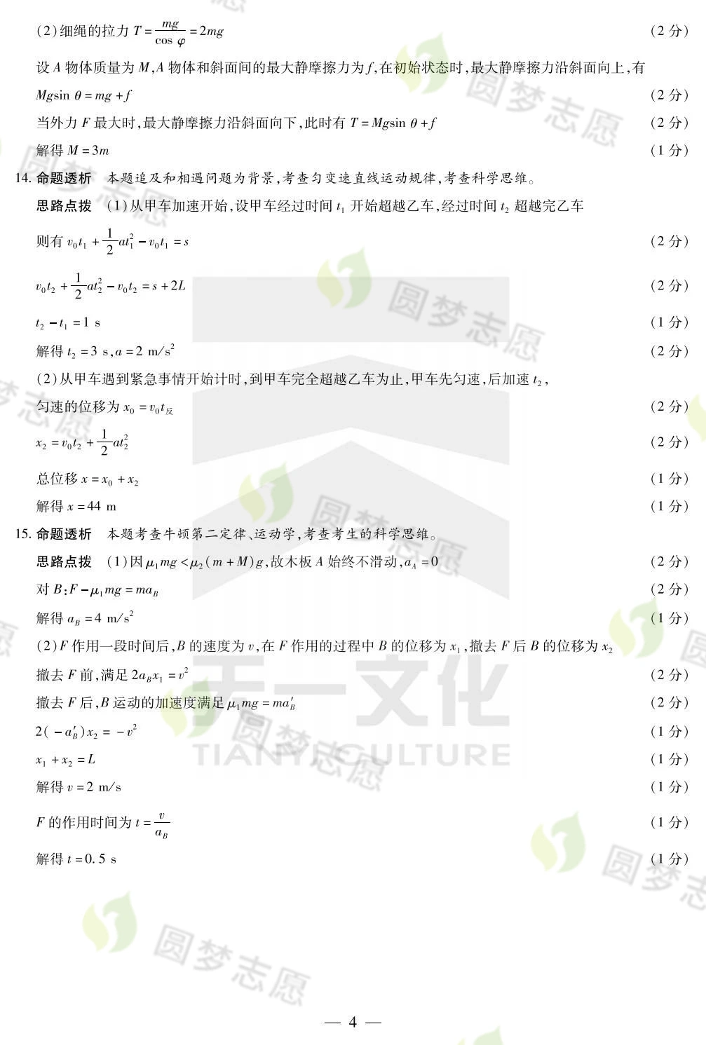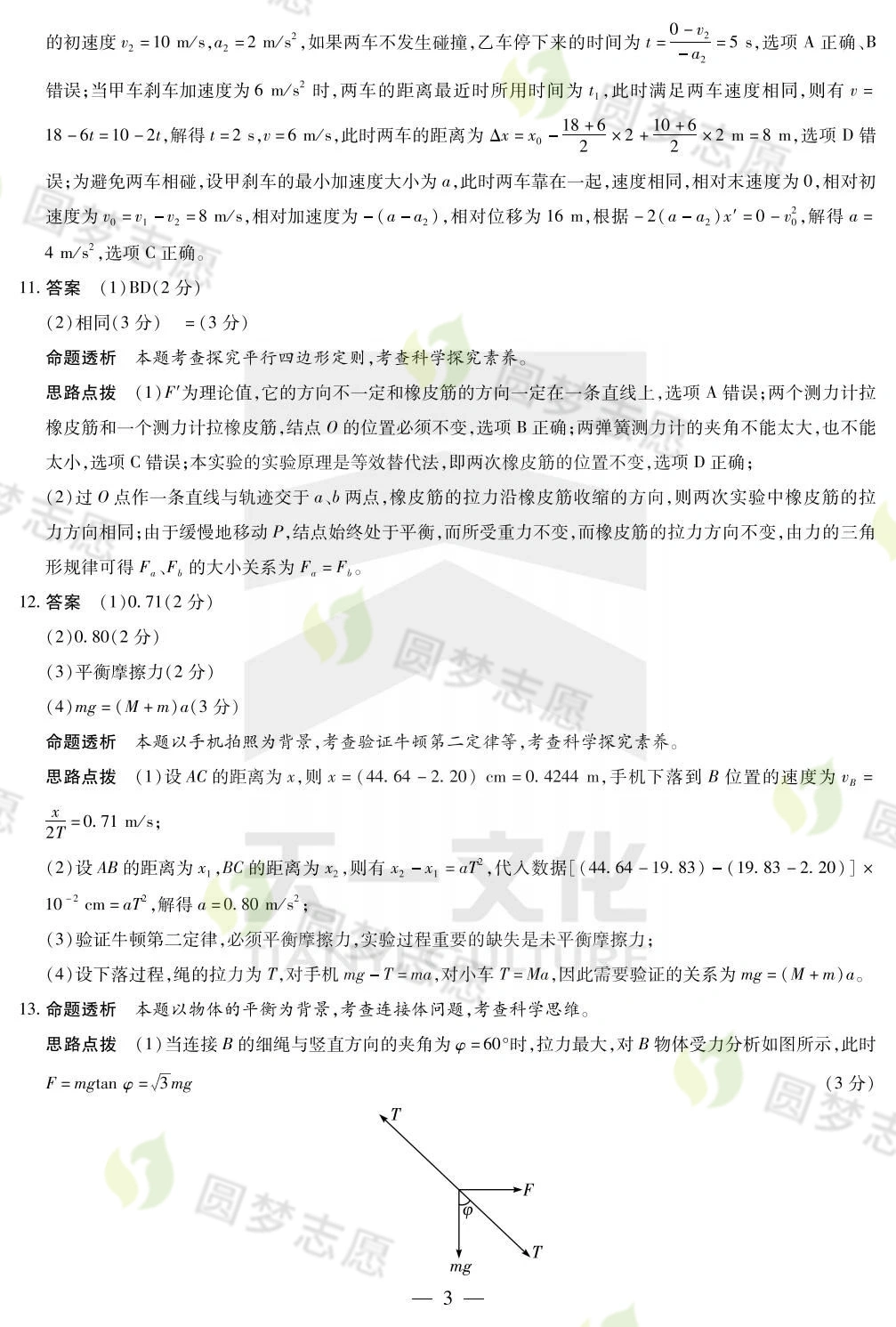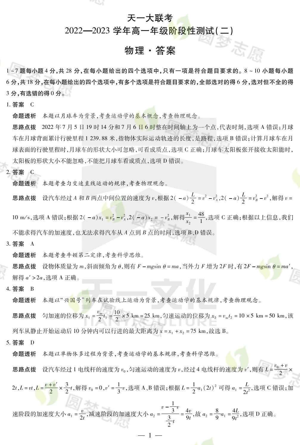 二、2023河南天一大联考高一12月二联考试物理答案解析