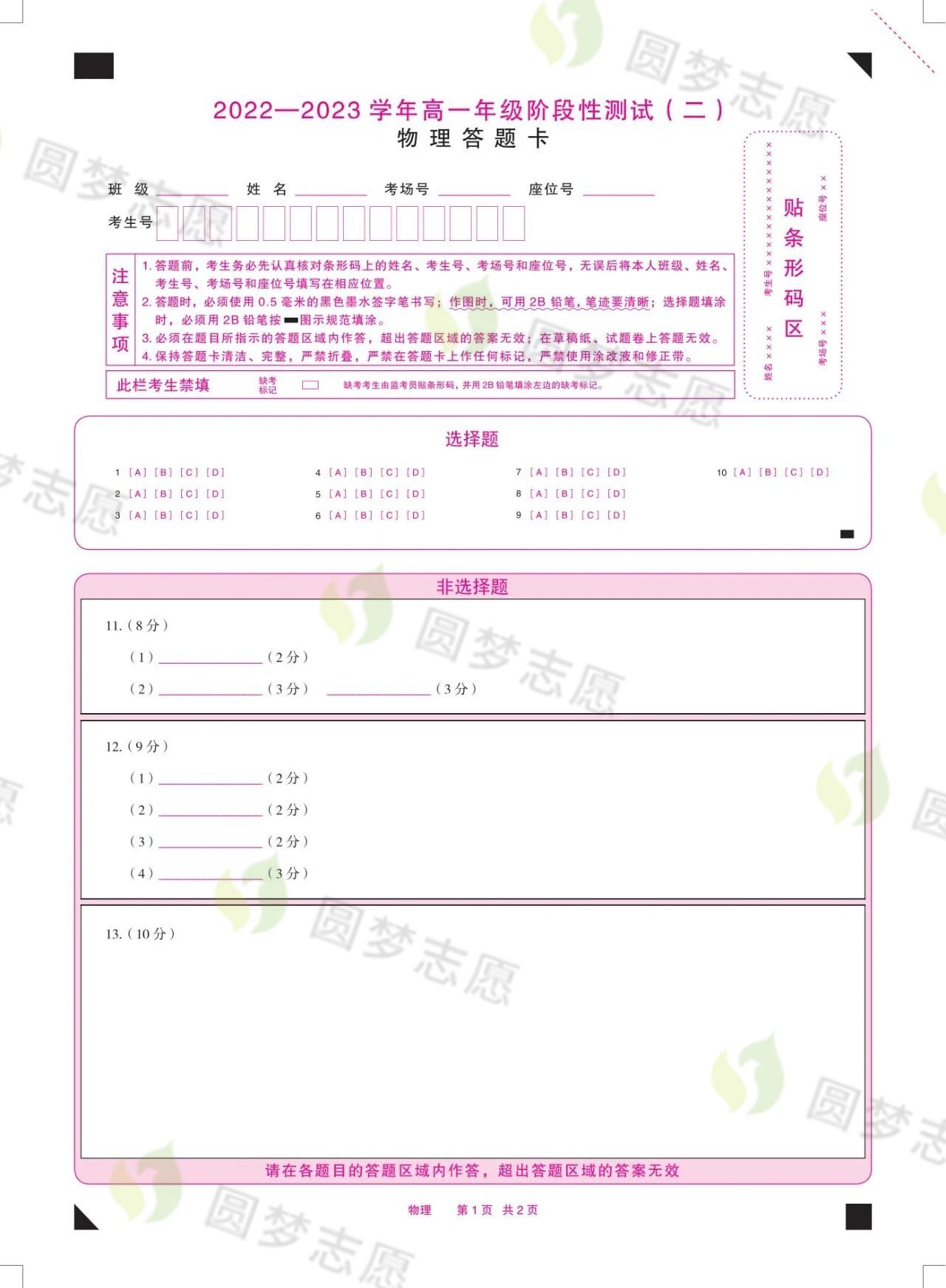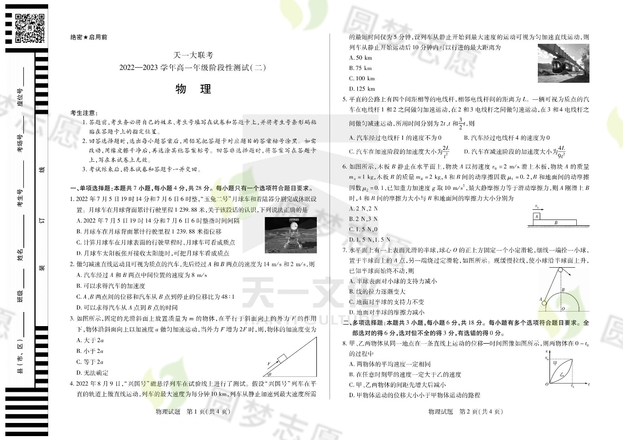 2023河南天一大联考高一12月二联考试于2022年12月8日开考,考试结束后高考100网小编将更新2023河南天一大联考高一12月二联考试物理答案及试卷,下文为小编搜集整理的2023河南天一大联考高一12月二联考试物理试题及参考答案,供大家参考。
