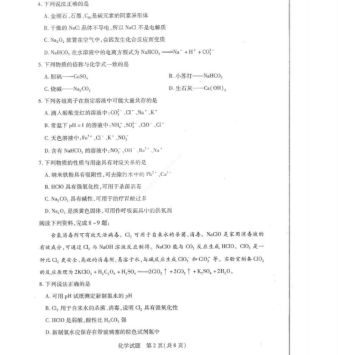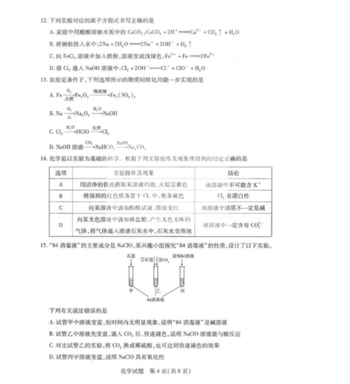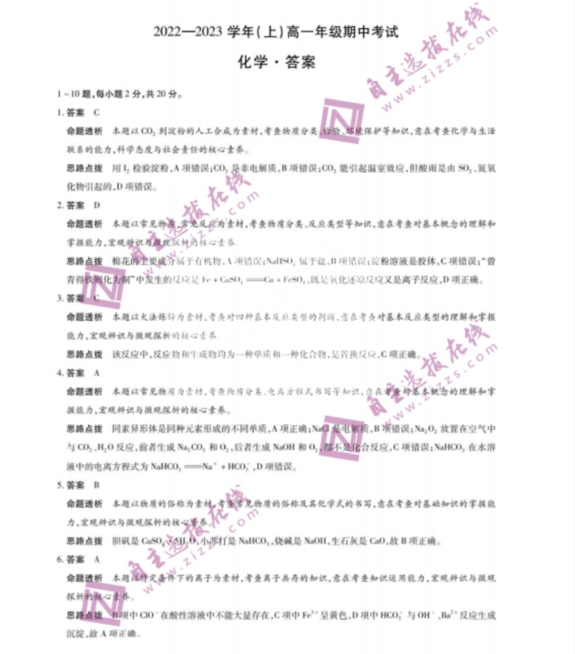 本期将公布天一大联考2022-2023高一二联化学答案及试卷汇总,以便于大家估分,查漏补缺,不断进步,请大家持续关注高考100网站。