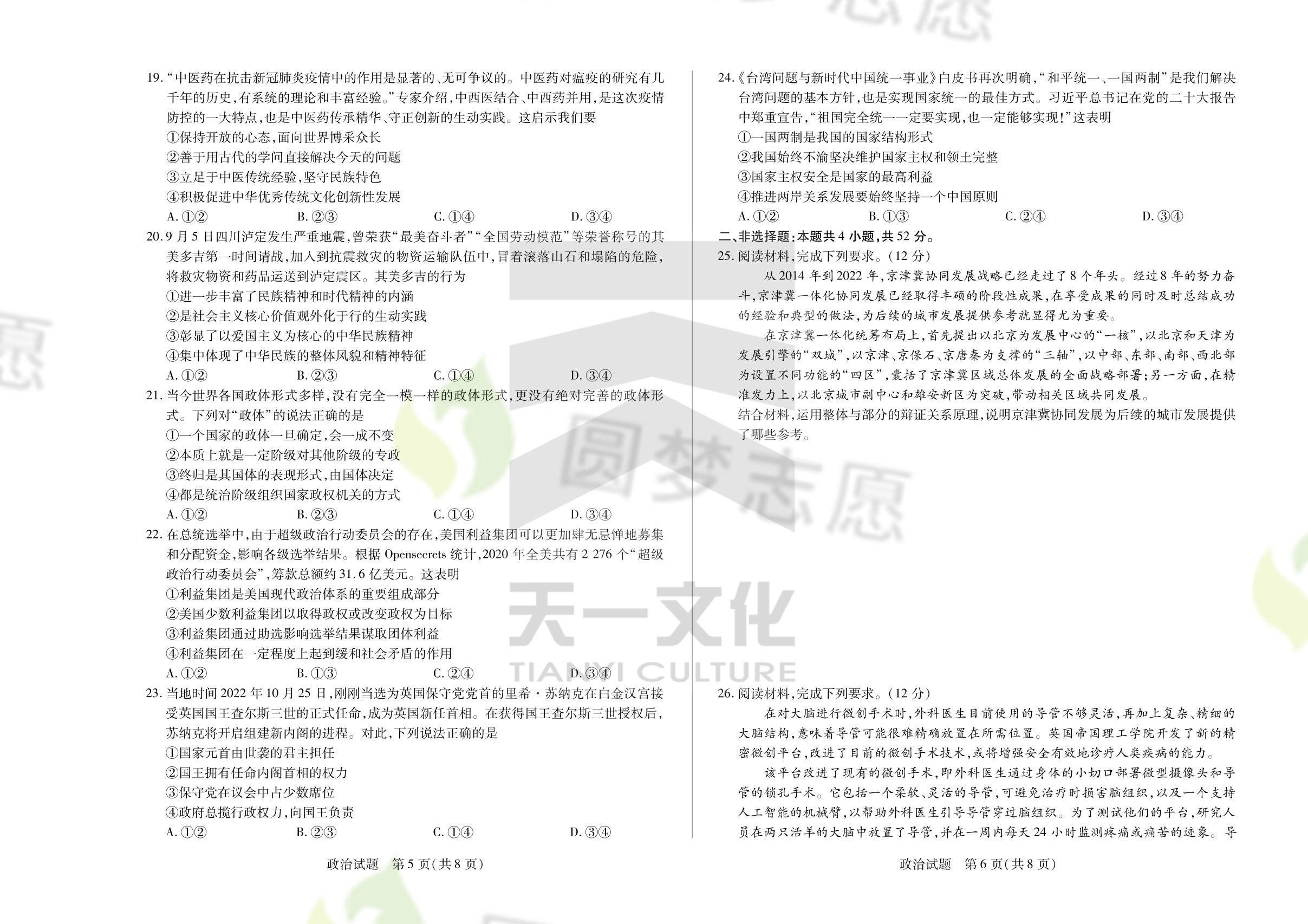 河南天一大联考2022-2023高二二联考试于2022年12月10日开考,考试结束后高考100网小编将更新河南天一大联考2022-2023高二二联考试政治答案及试卷,下文为小编搜集整理的河南天一大联考2022-2023高二二联考试政治试题及参考答案,供大家参考。