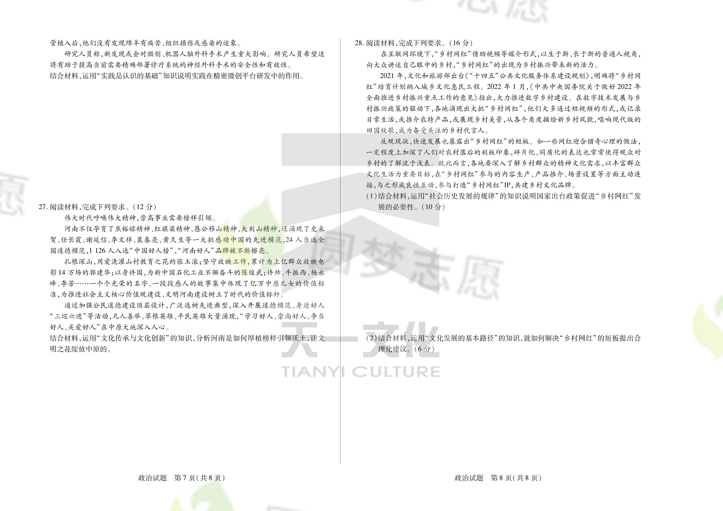 本文将公布天一大联考2022-2023高二二联政治答案及试卷汇总,以便于考生估分,请大家持续关注高考100网站。