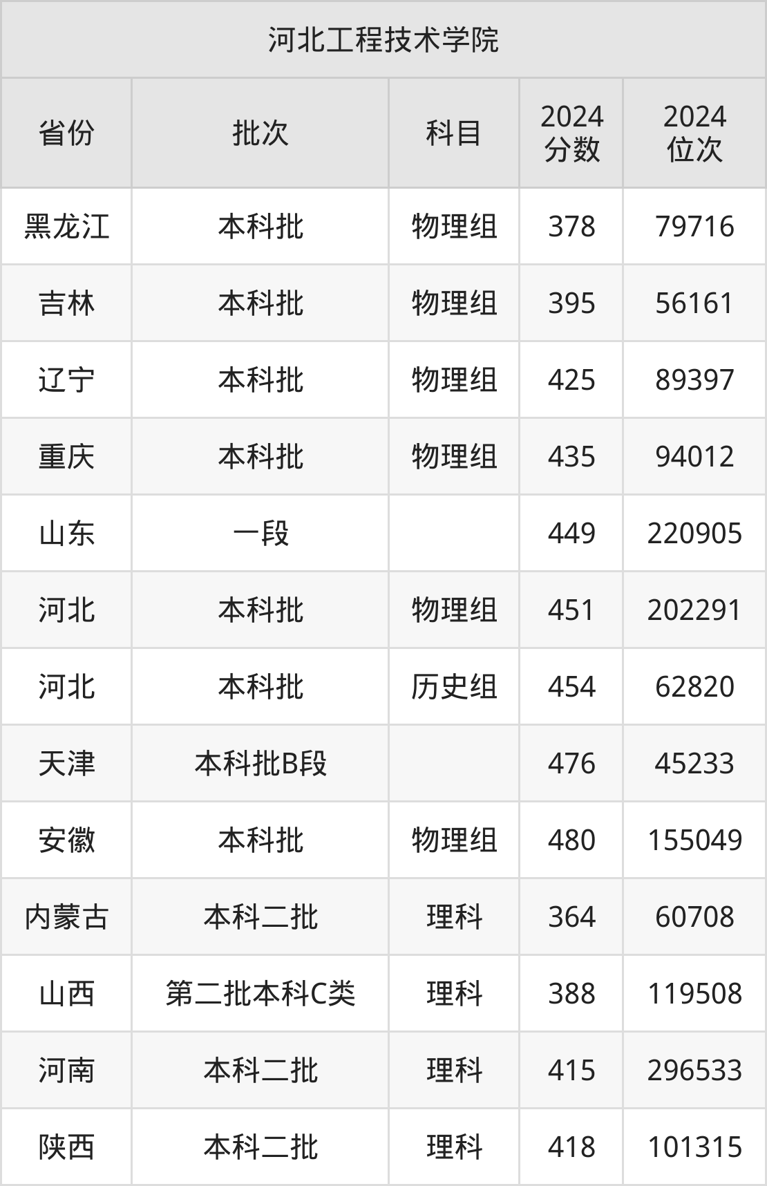圆梦小编为2025届想要报考河北工程技术学院的同学整理了:河北工程技术学院2024年在全国12个省的最低分及录取位次。