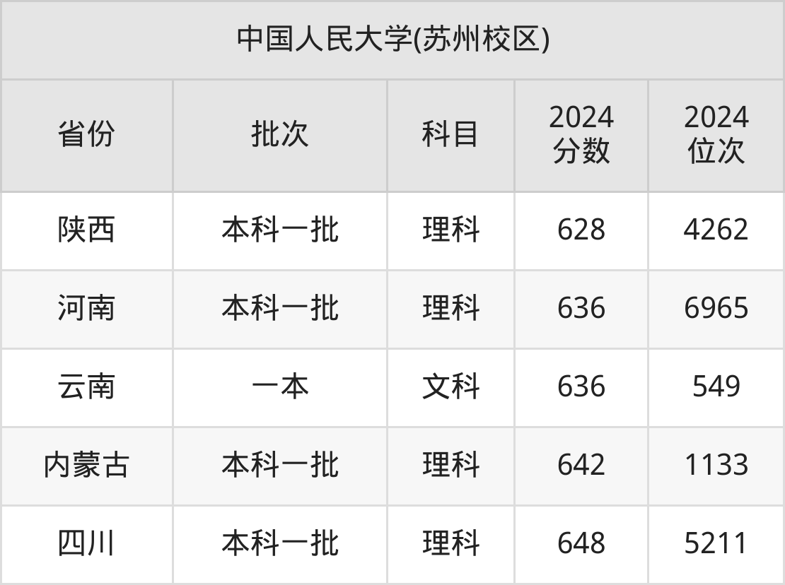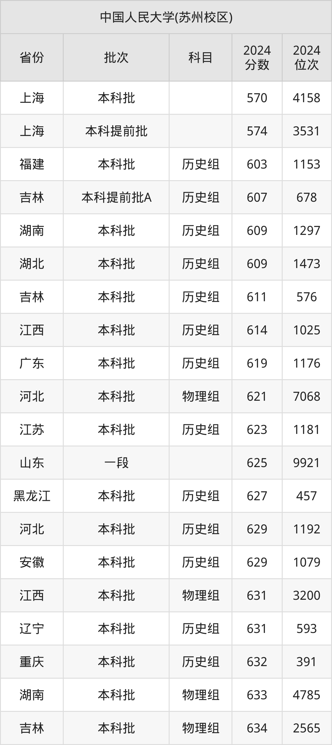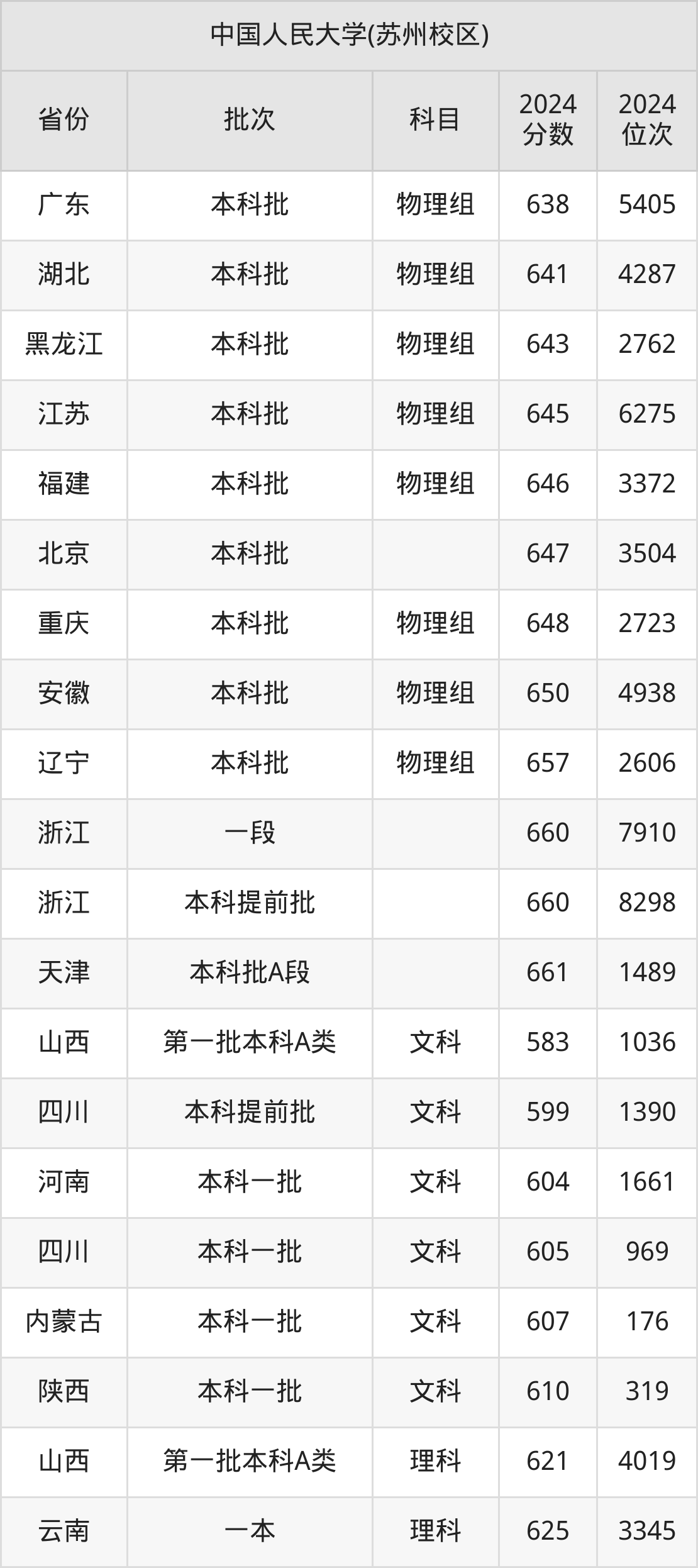 二、中国人民大学(苏州校区)2024年录取分数线汇总