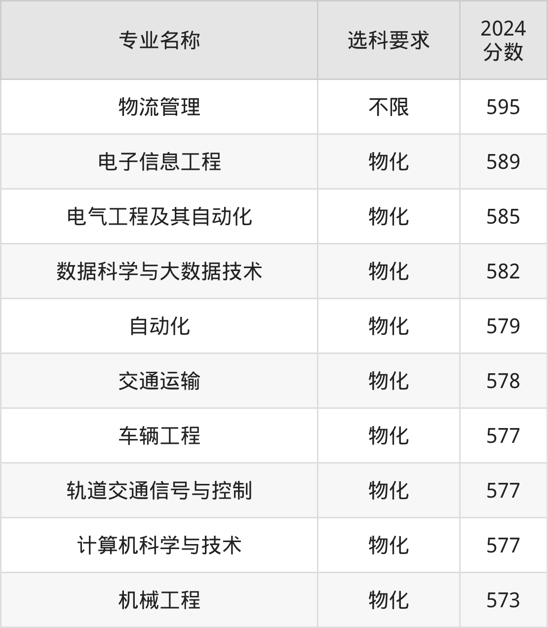 | 专业名称 | 选科要求 | 2024 分数 |