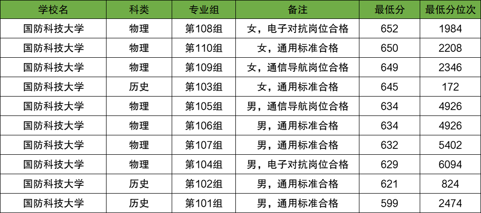 4.2025年国防科技大学在山东录取分数线为:物理+化学科目最低分627分、物理科目最低分634分、不提科目要求最低627分;