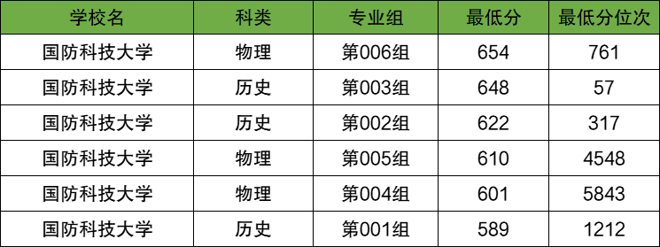 2025年国防科技大学在黑龙江物理类的最低录取分数线为601分;国防科技大学在黑龙江历史类录取分数为589分。