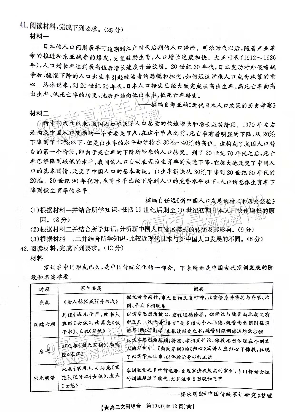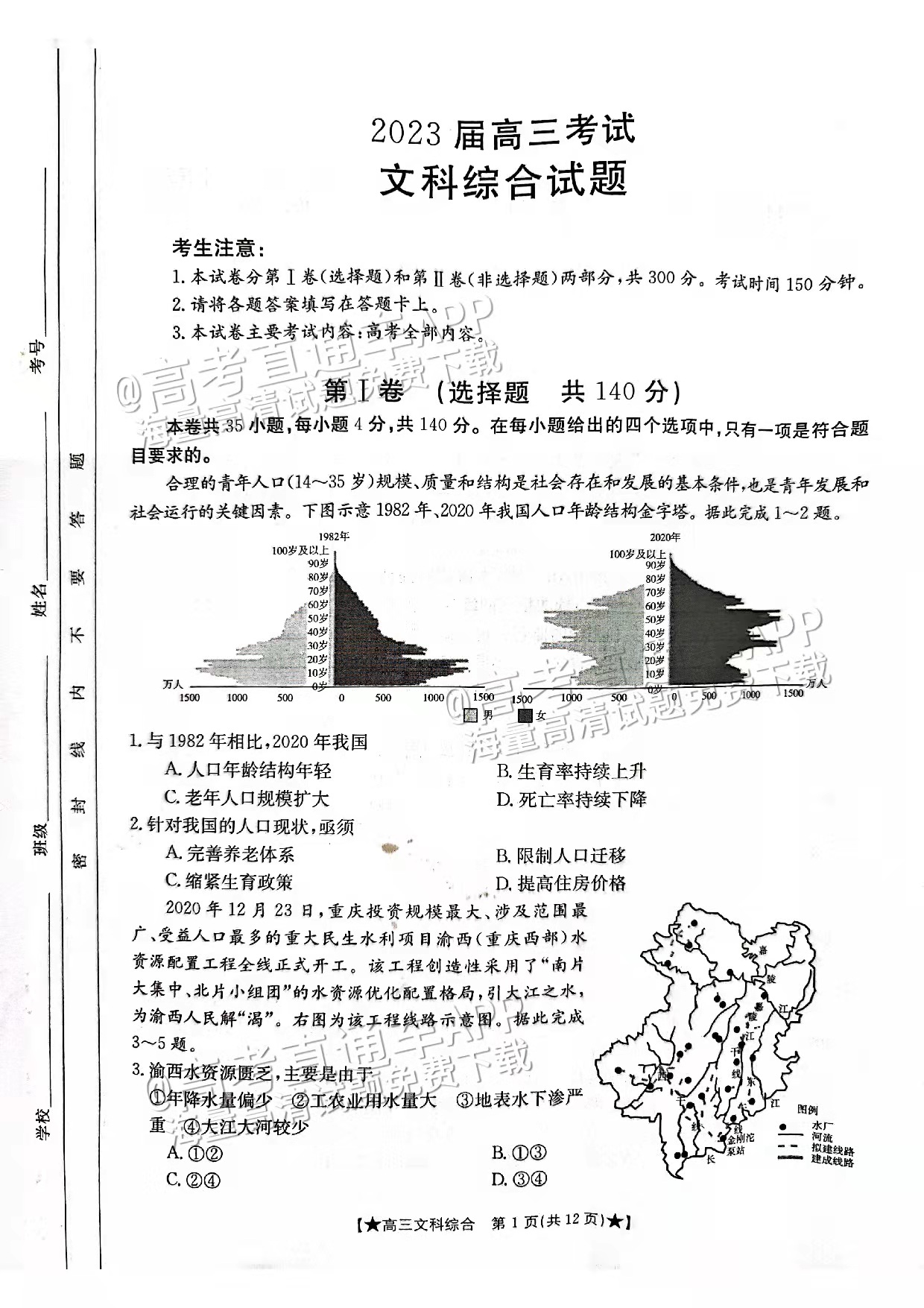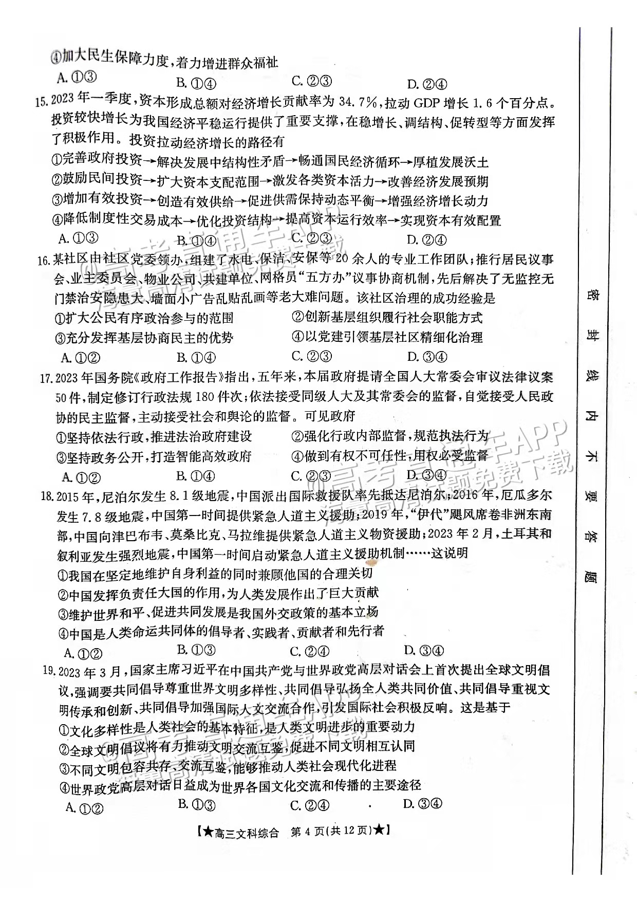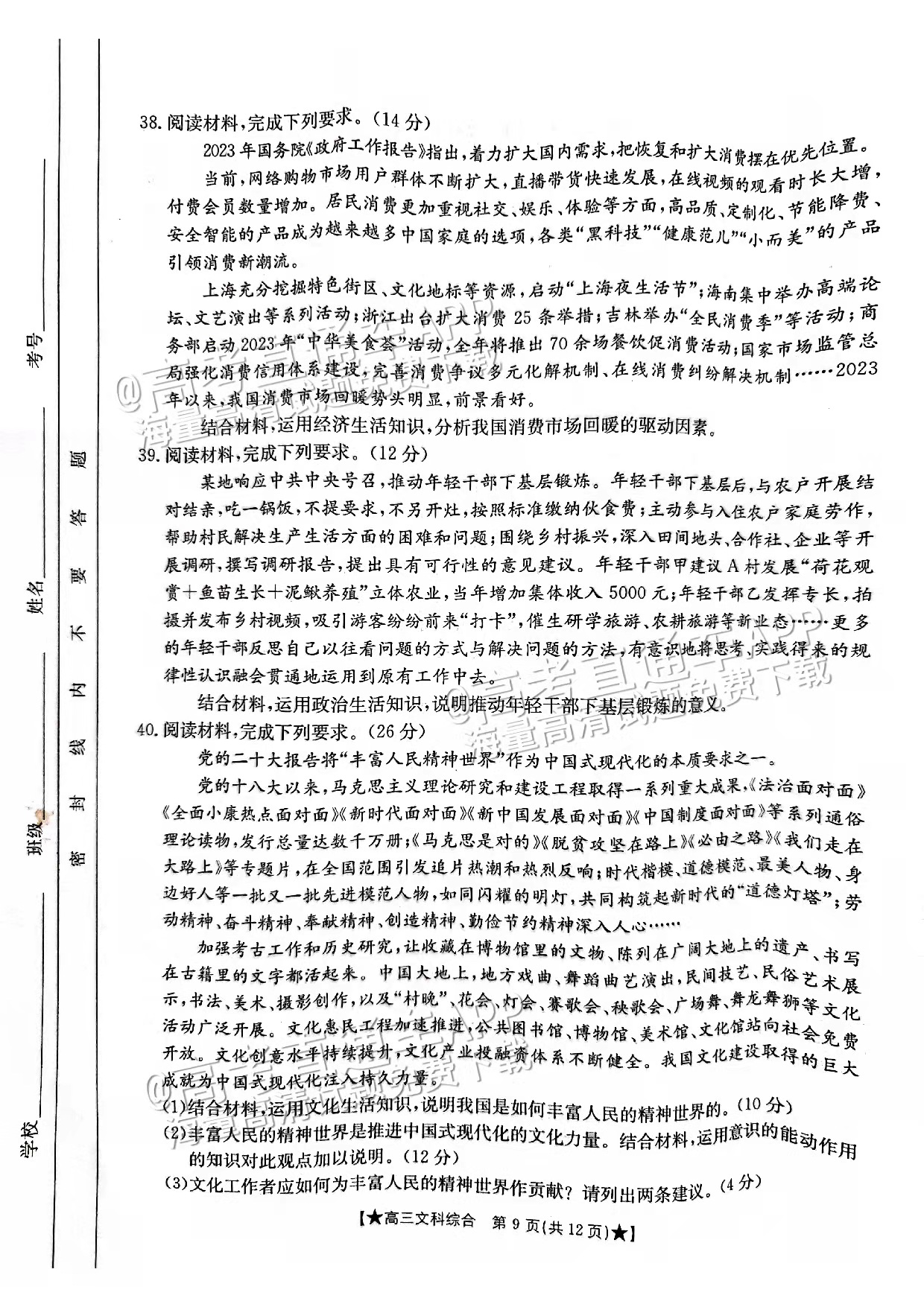 3、2023四川金太阳高三5月联考文综试卷及答案