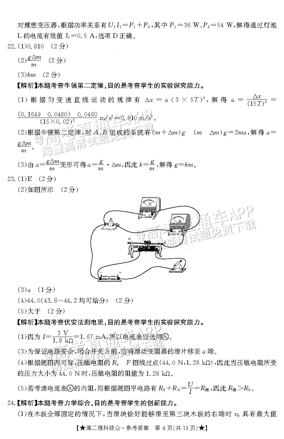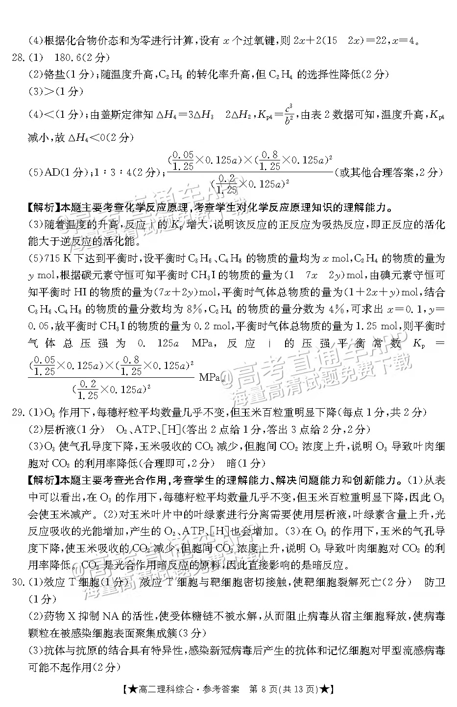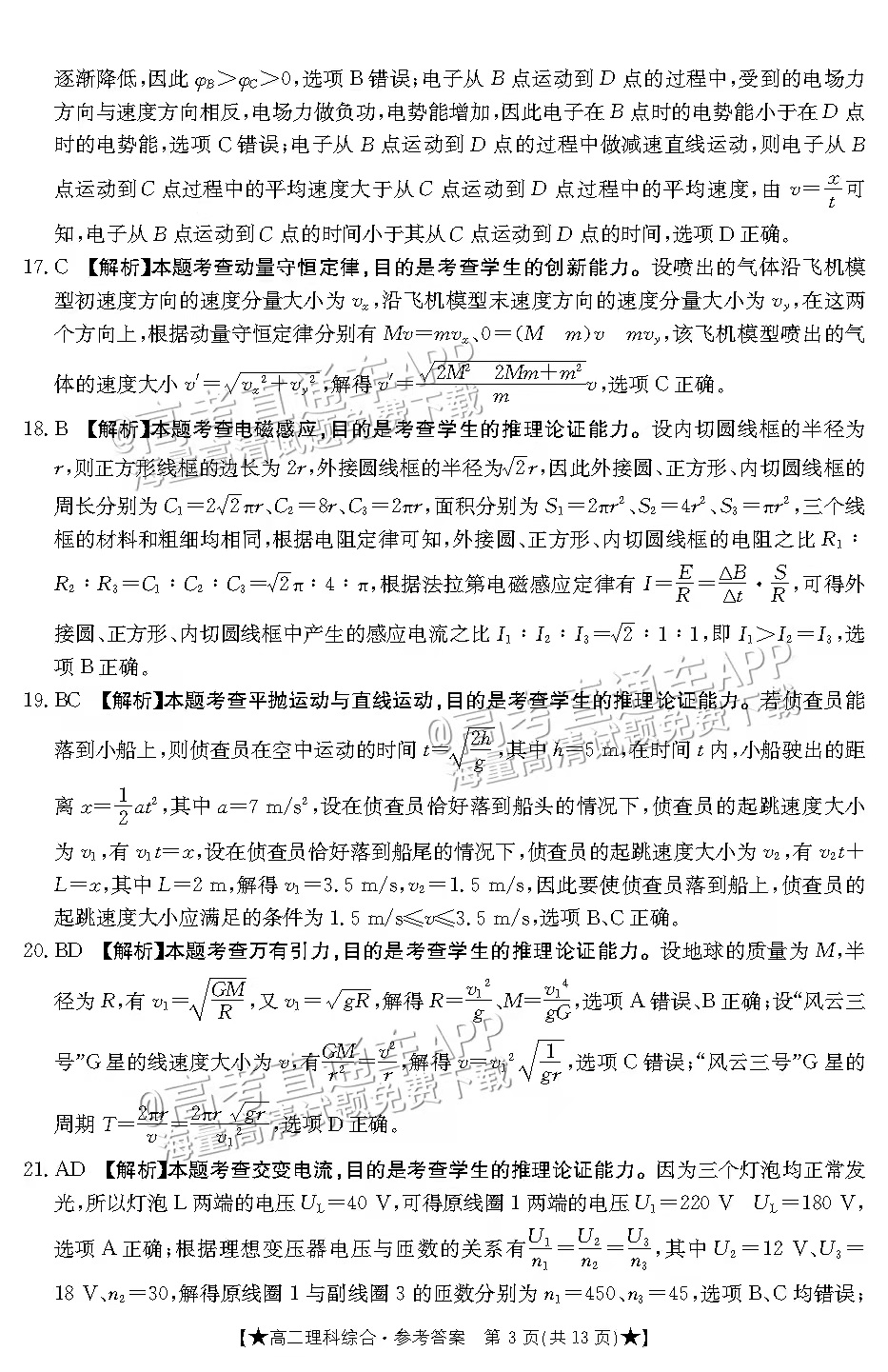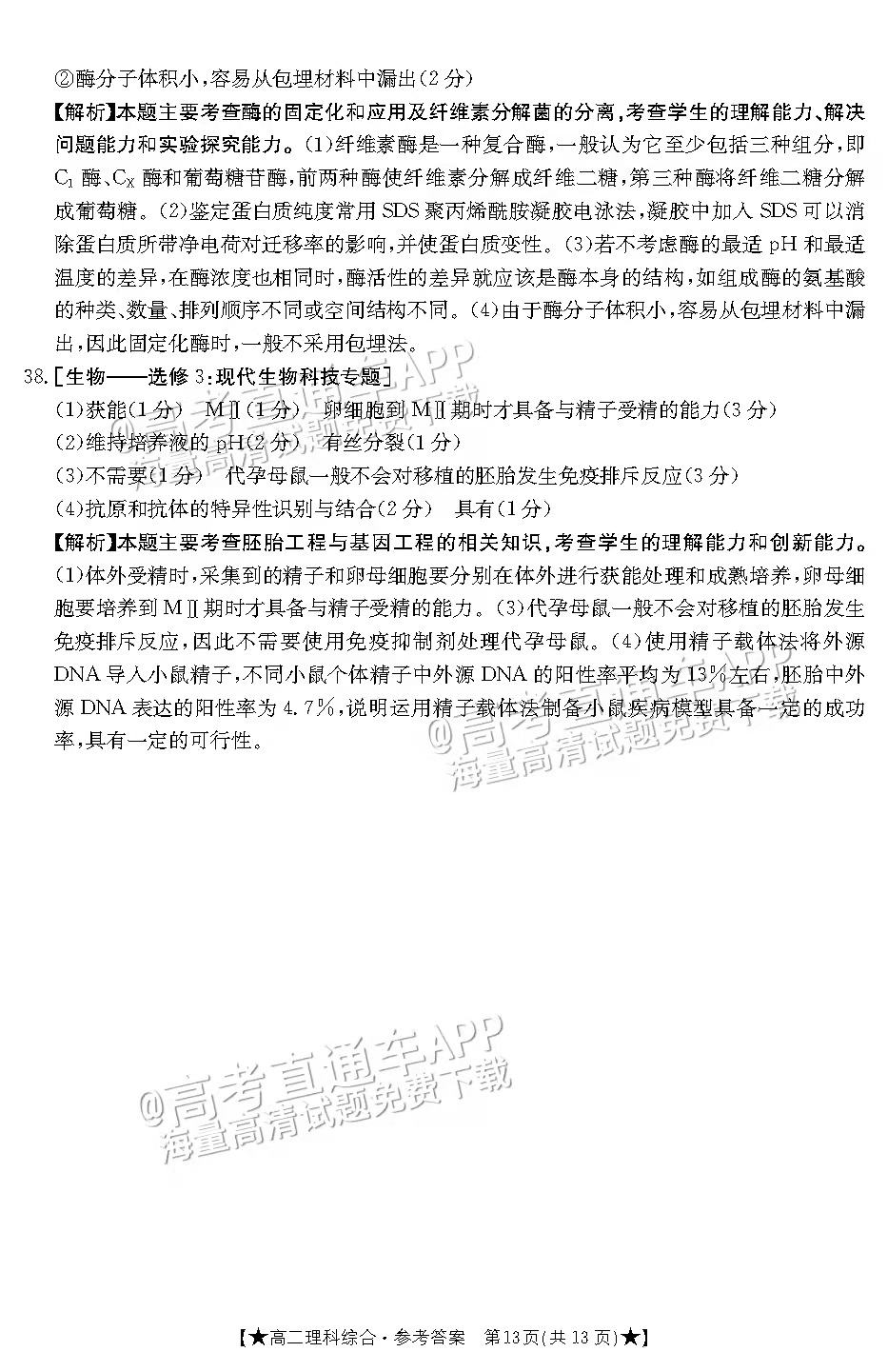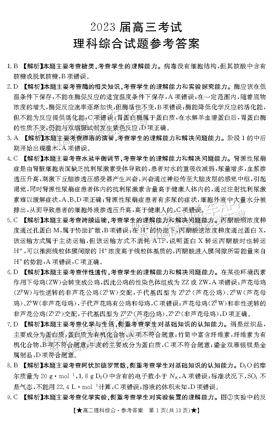 4、2023四川金太阳高三5月联考理综试卷及答案