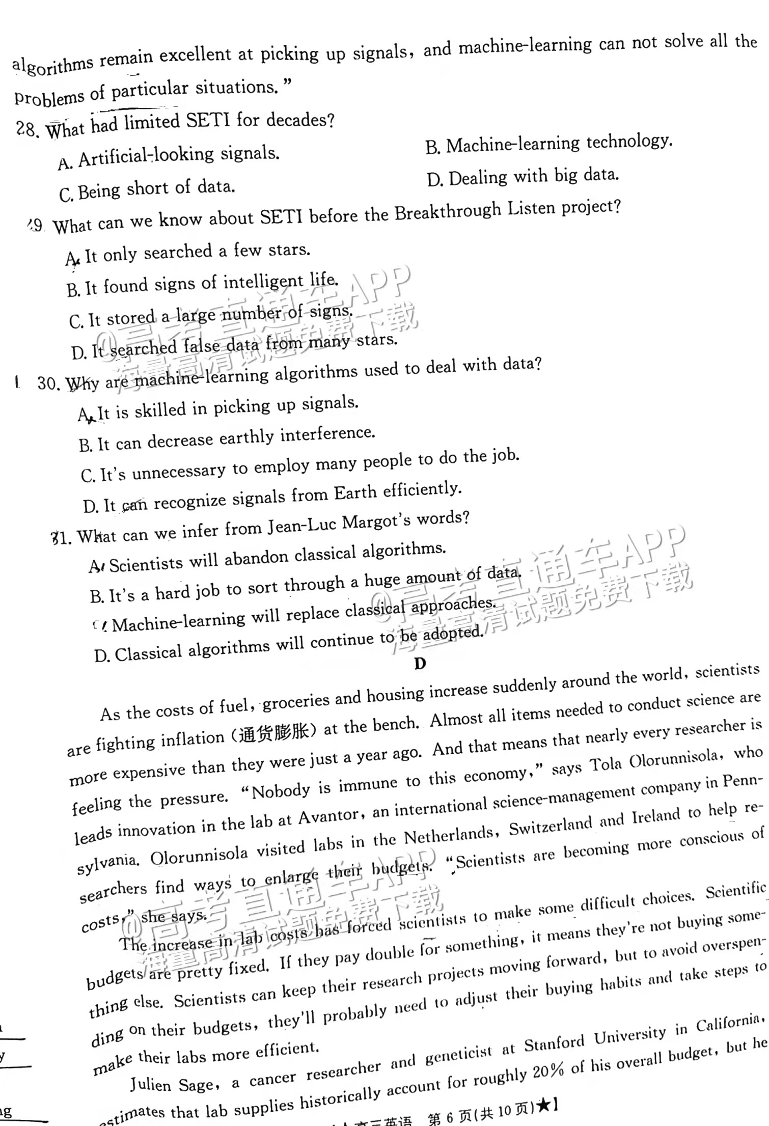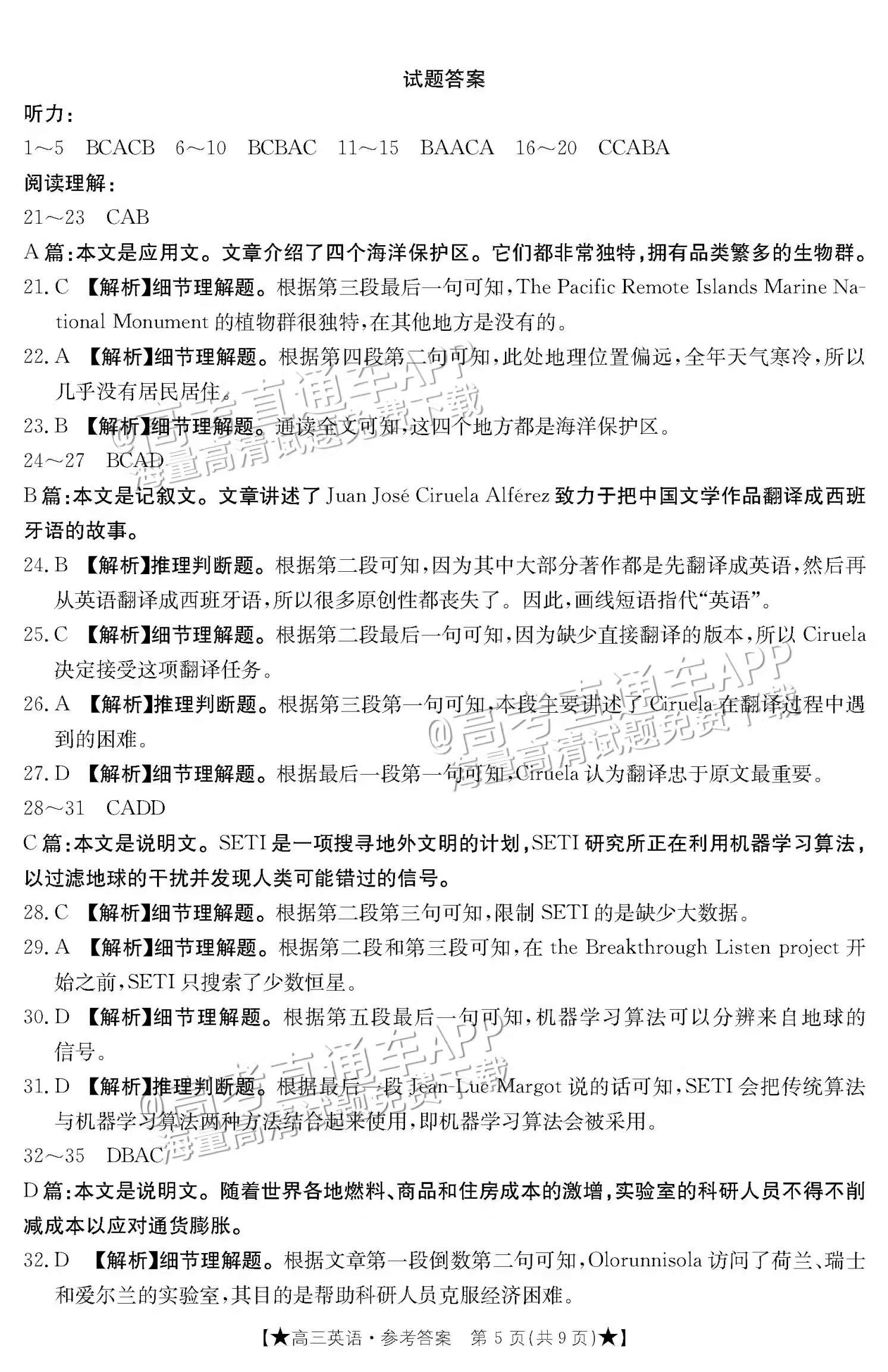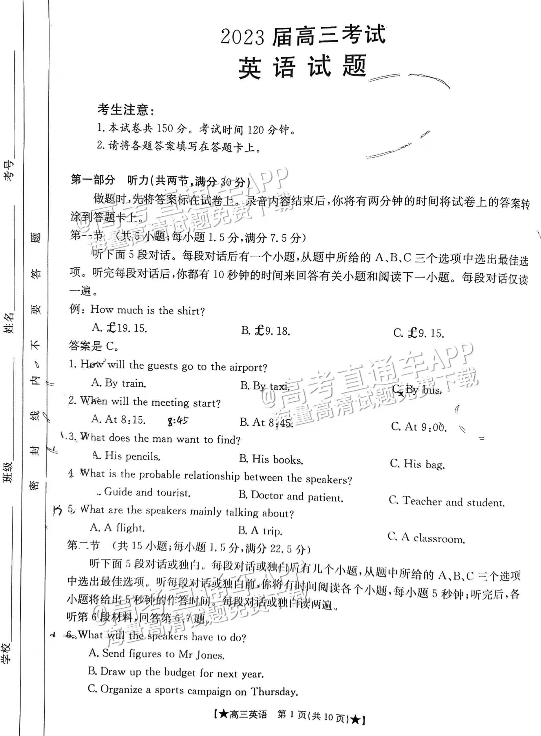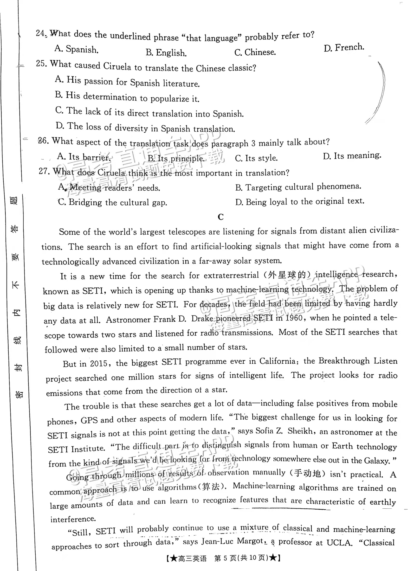 5、2023四川金太阳高三5月联考英语试卷及答案