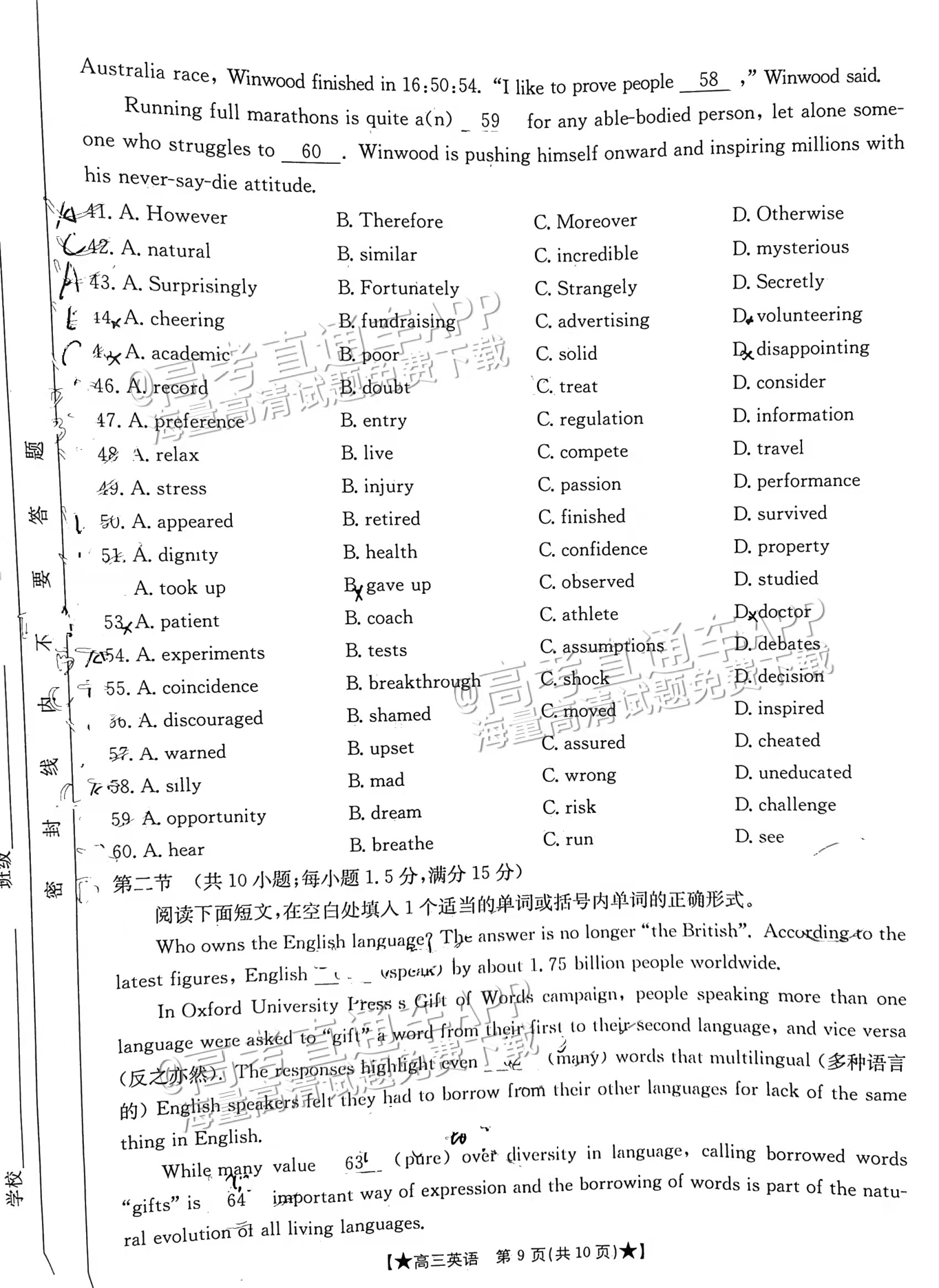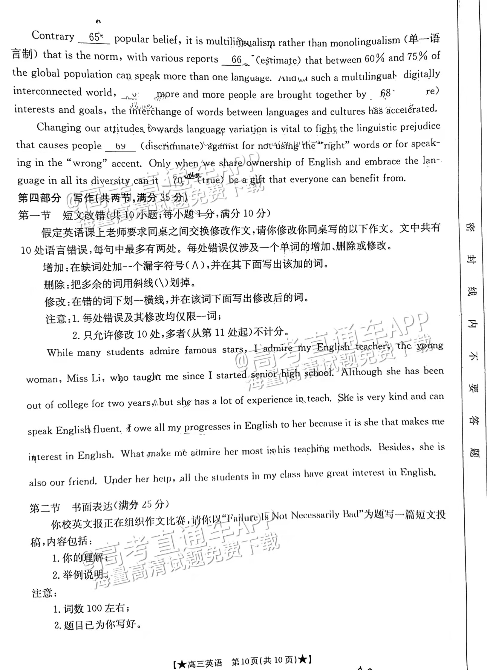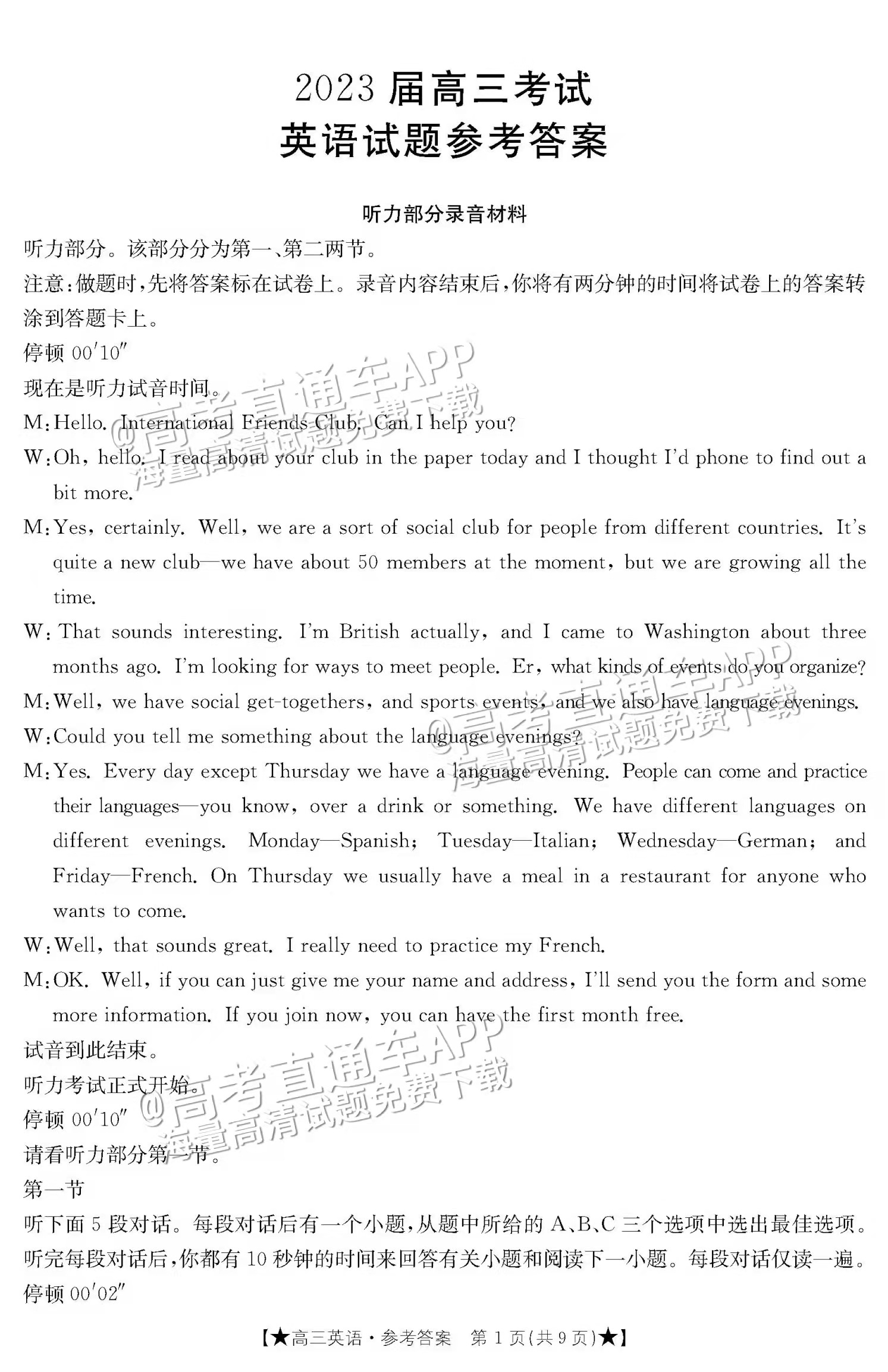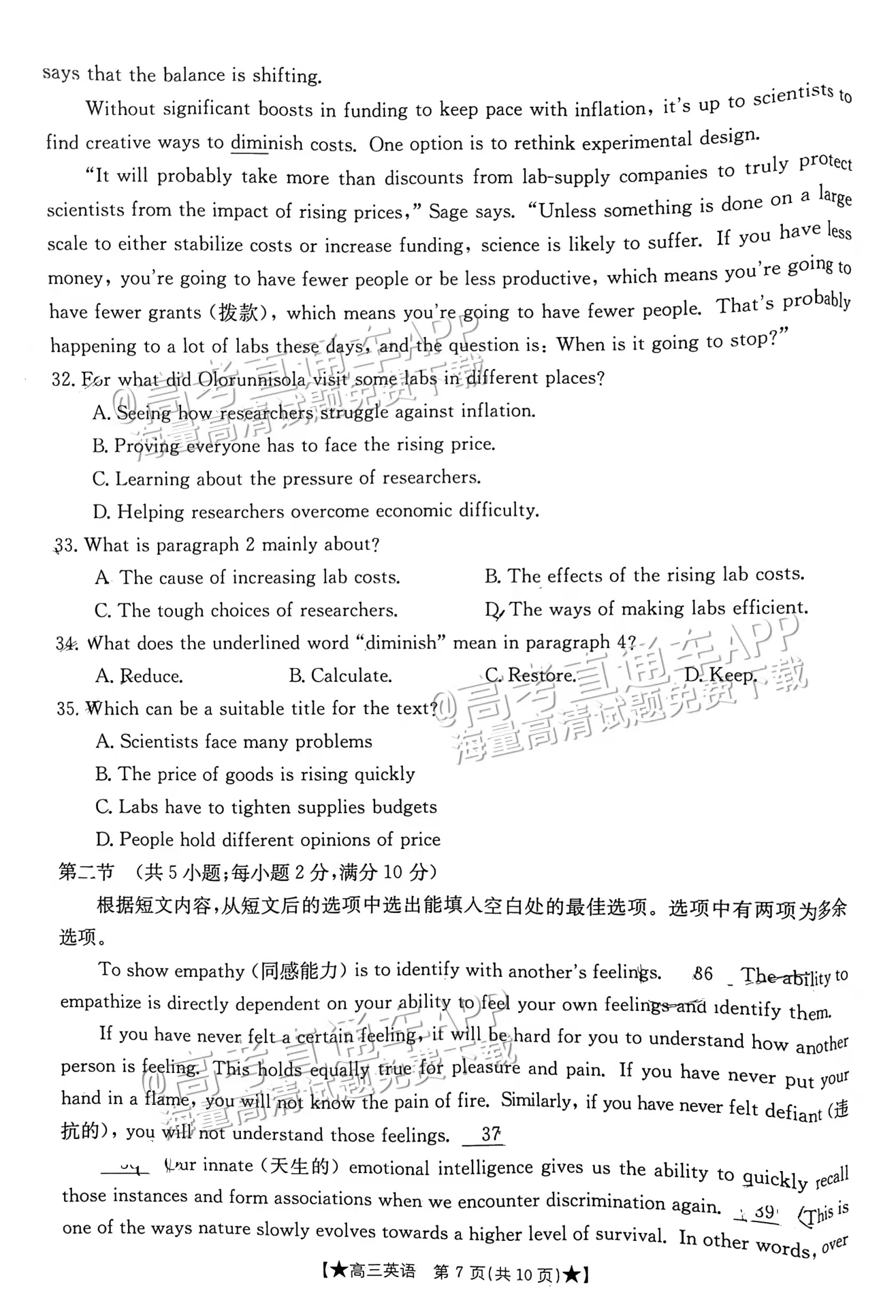 5、2023四川金太阳高三5月联考英语试卷及答案