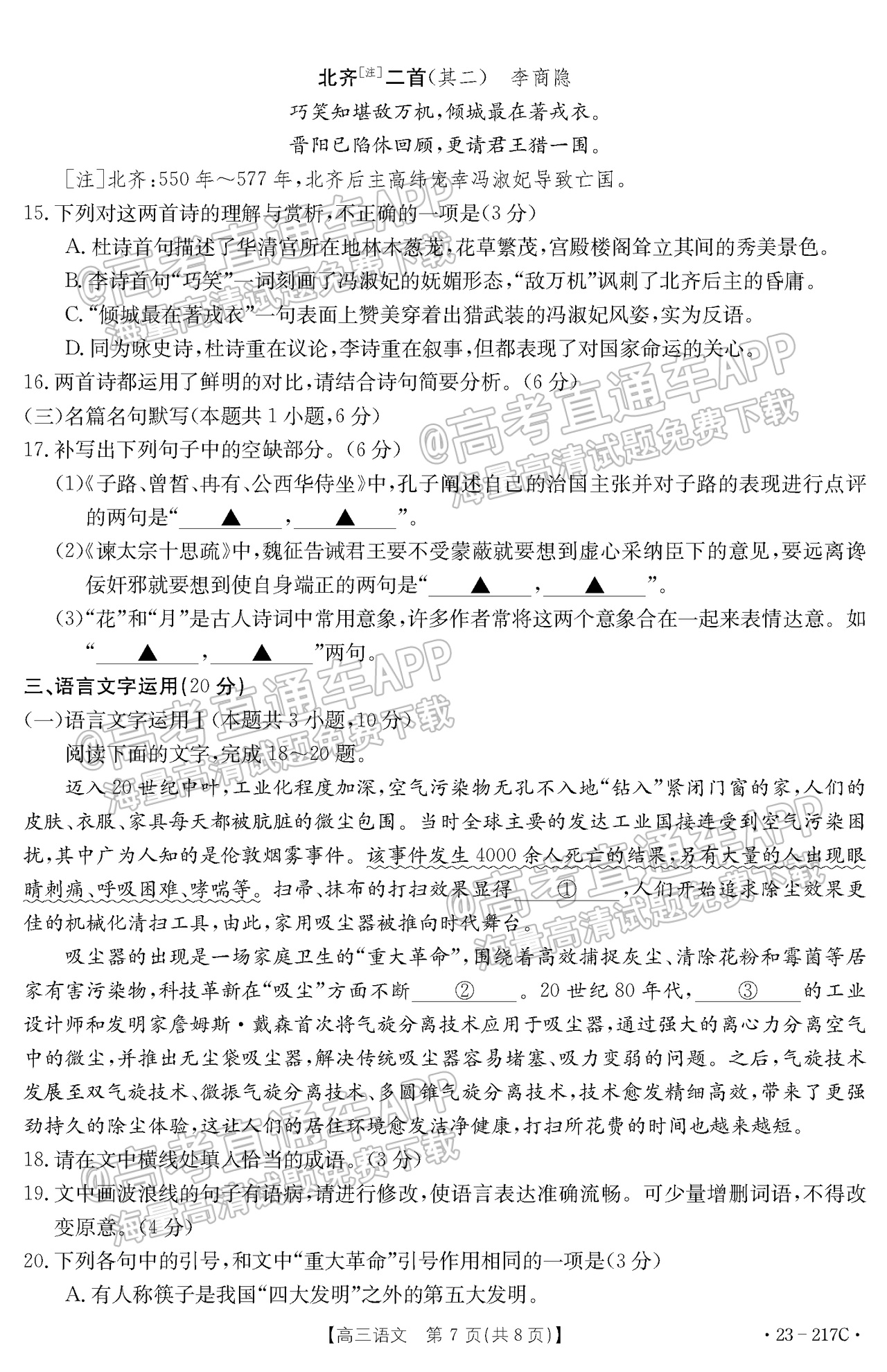 一、2023河北金太阳高三12月大联考语文试卷及答案