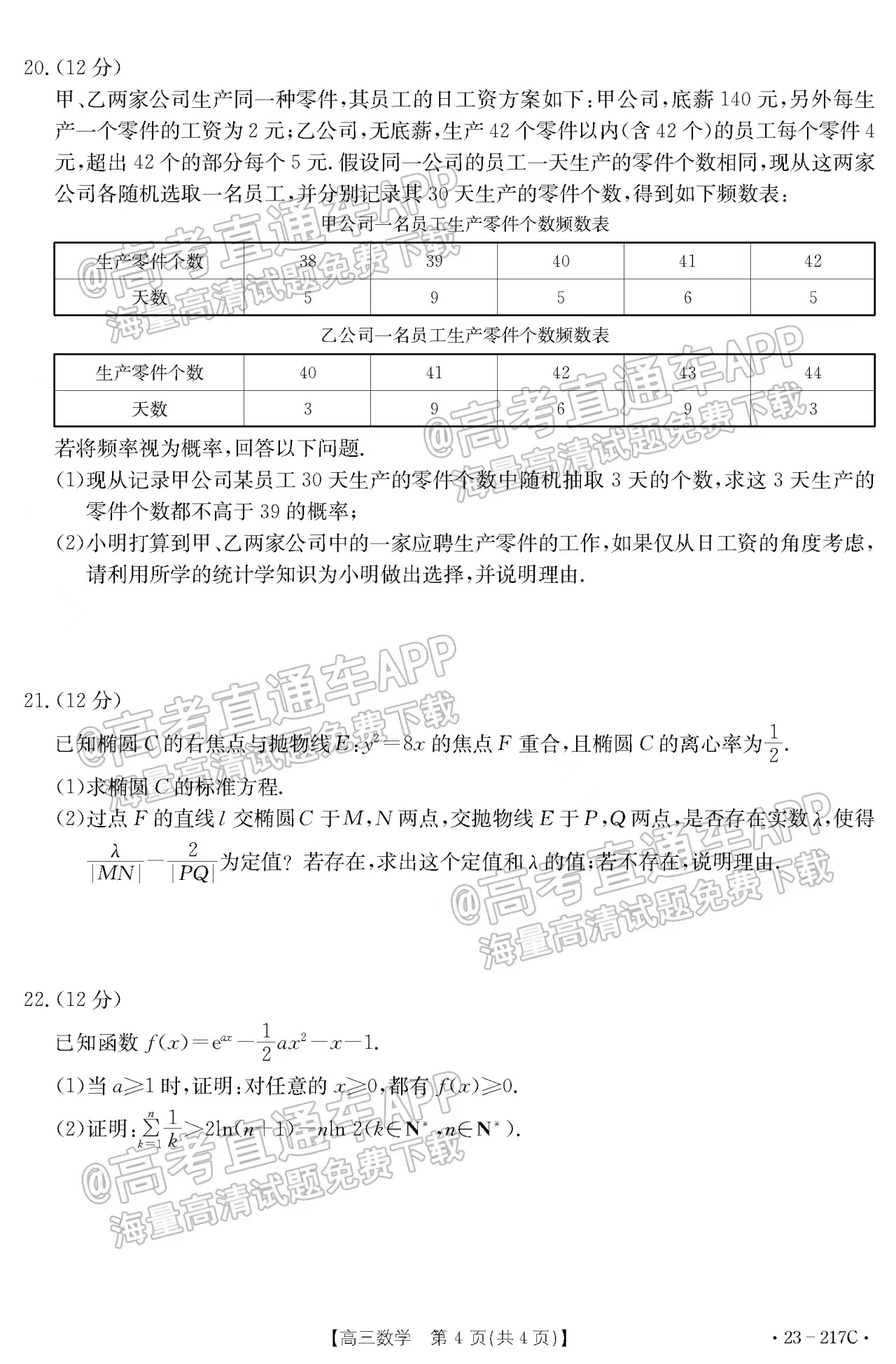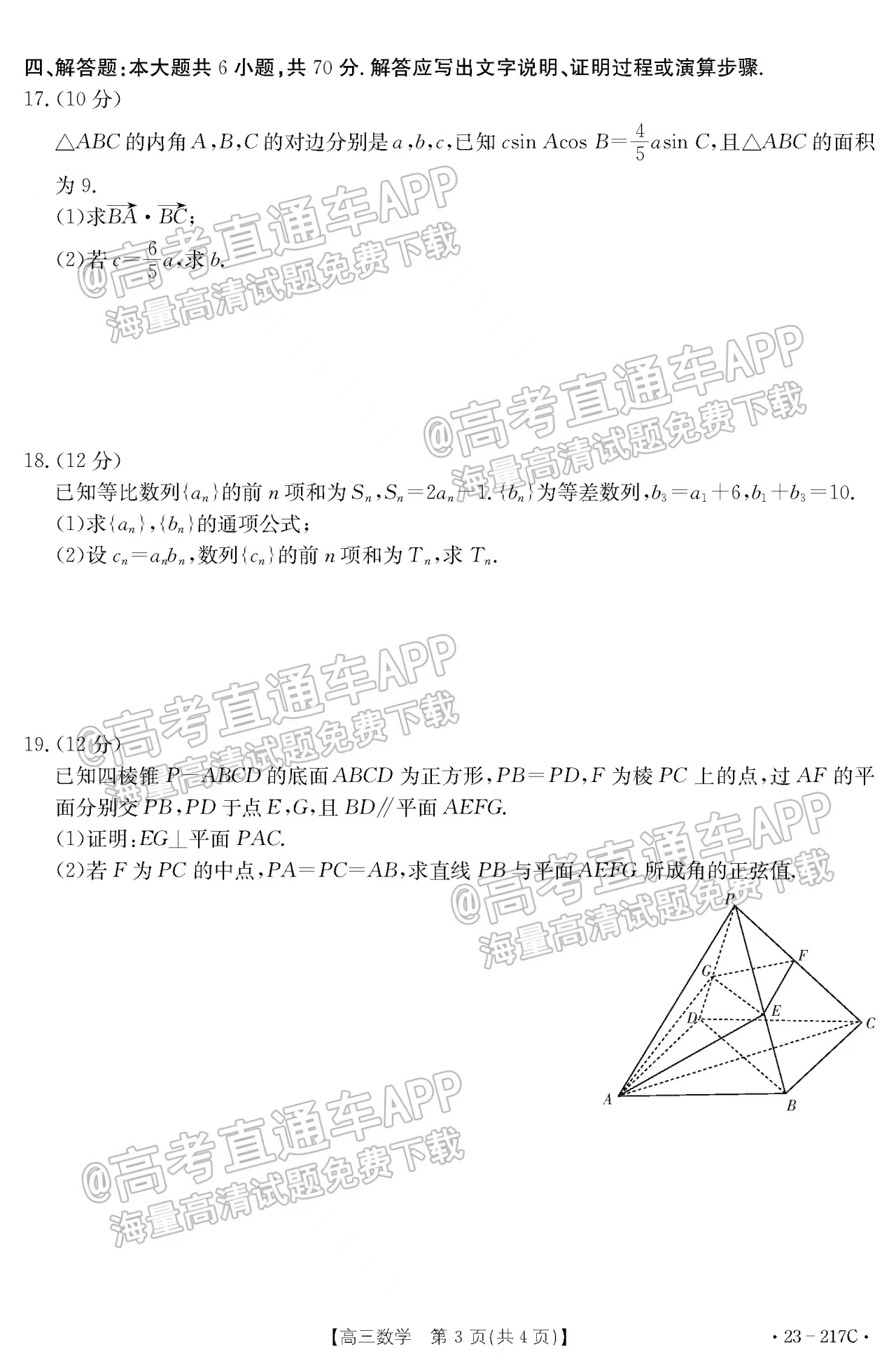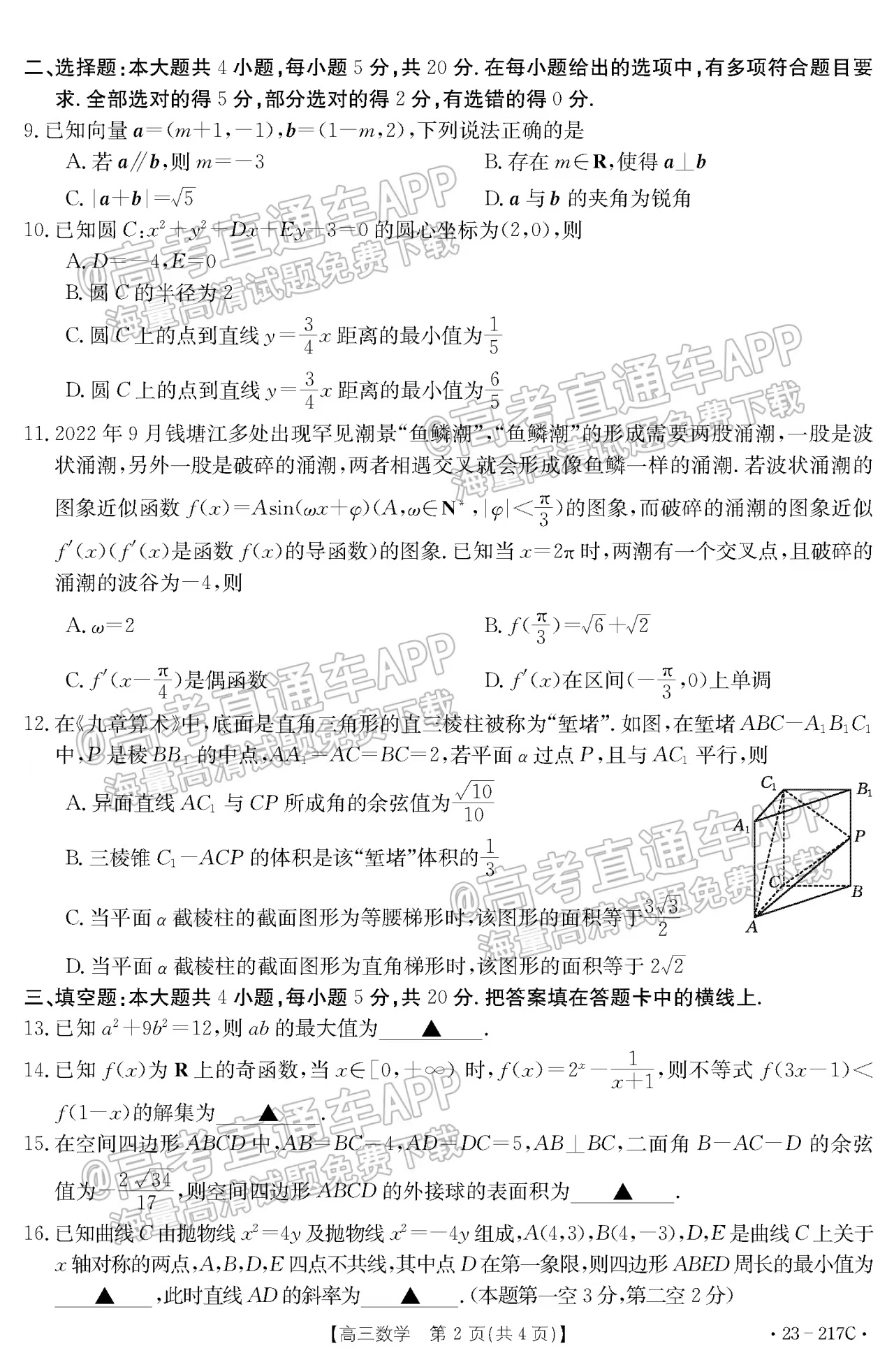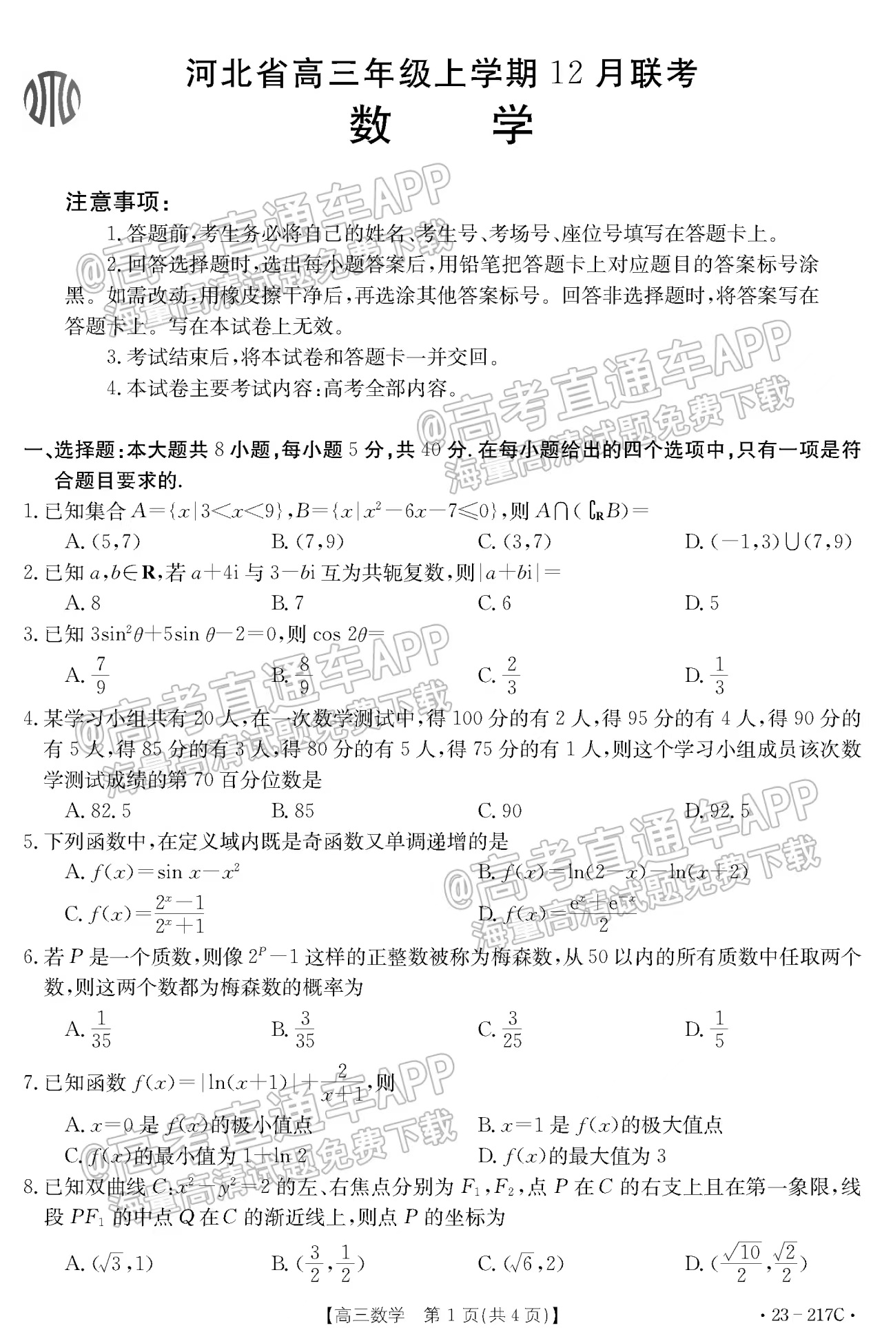 二、2023河北金太阳高三12月大联考数学试卷及答案