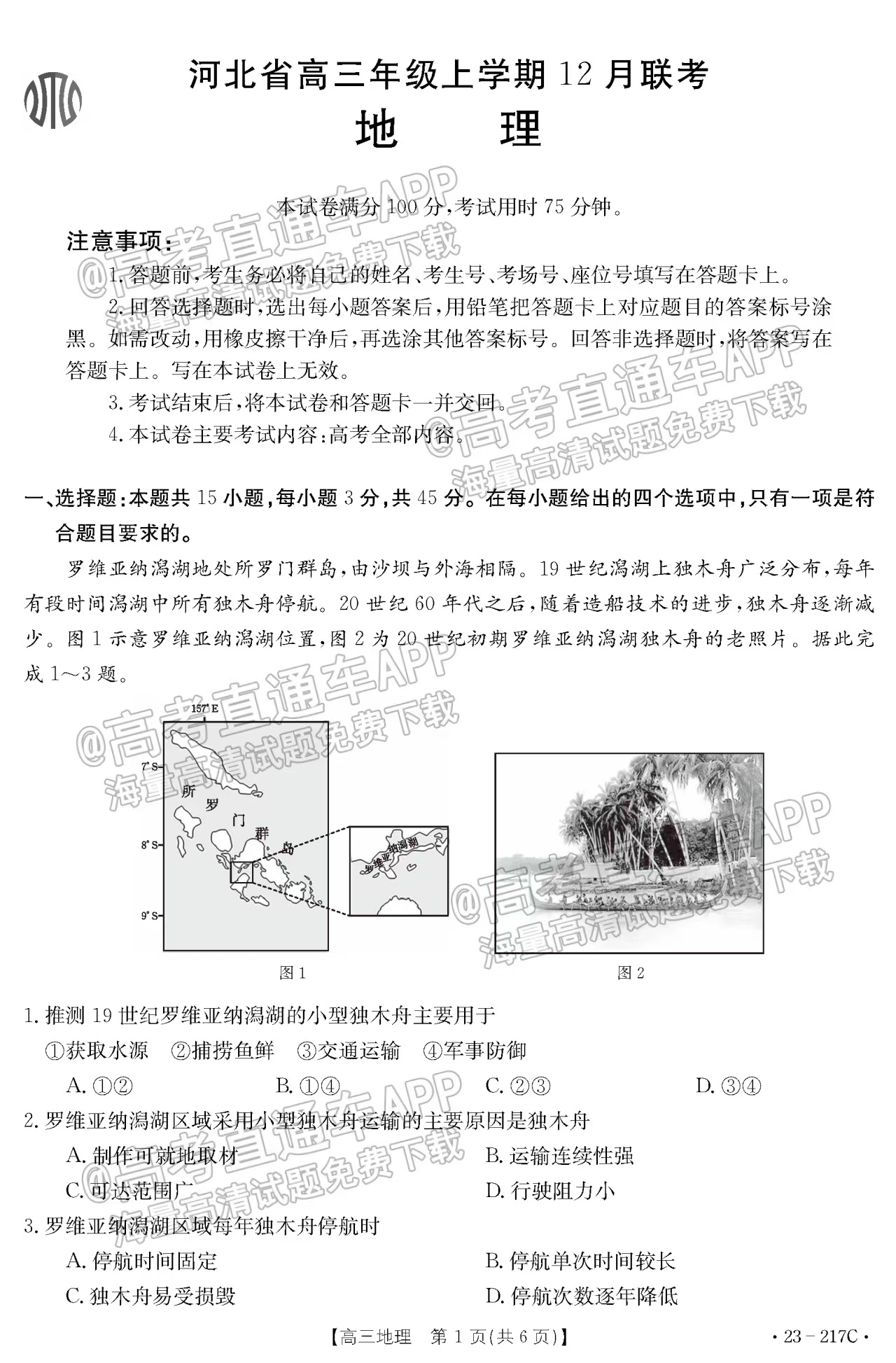 九、2023河北金太阳高三12月大联考地理试卷及答案
