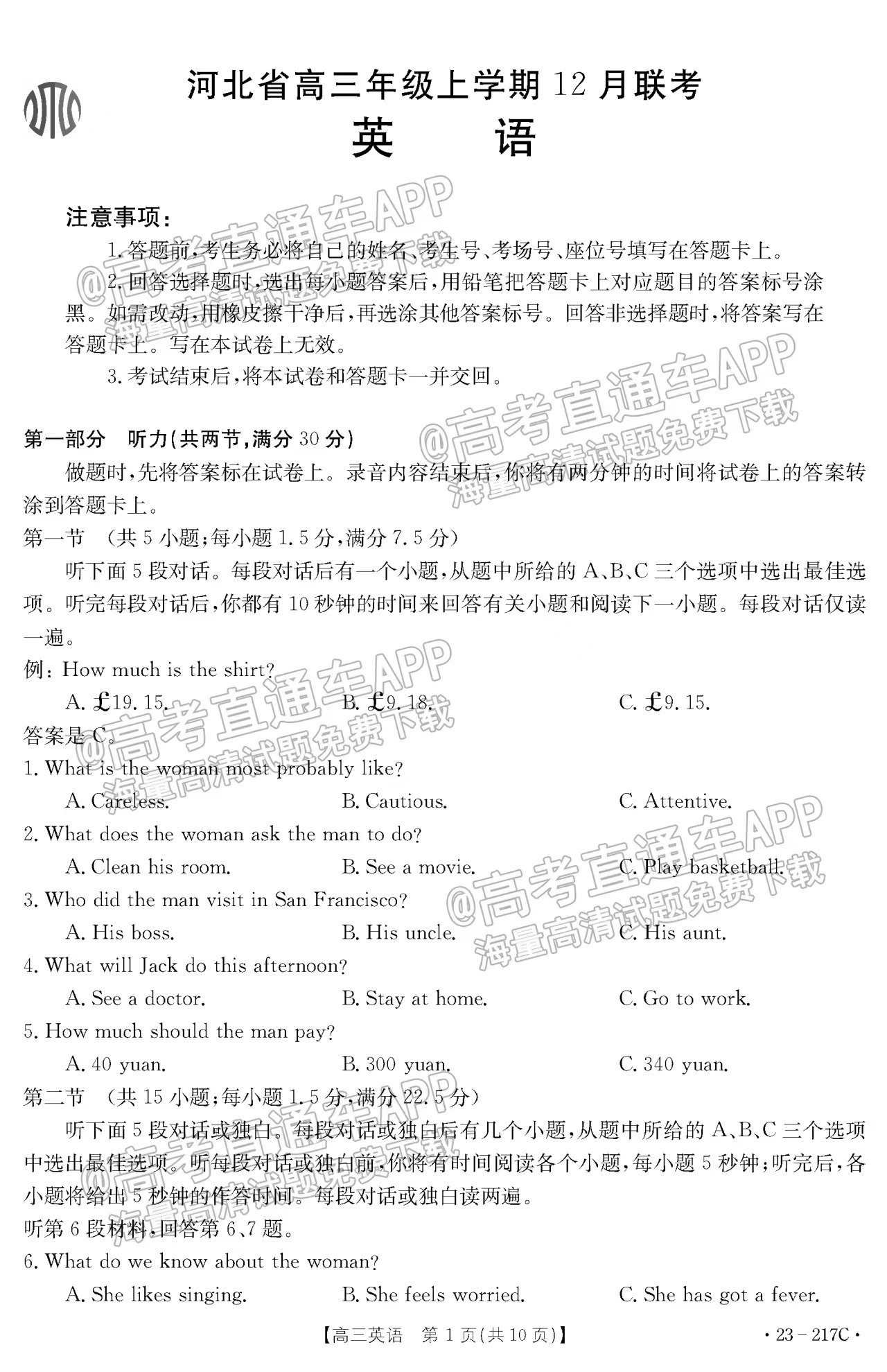 三、2023河北金太阳高三12月大联考英语试卷及答案