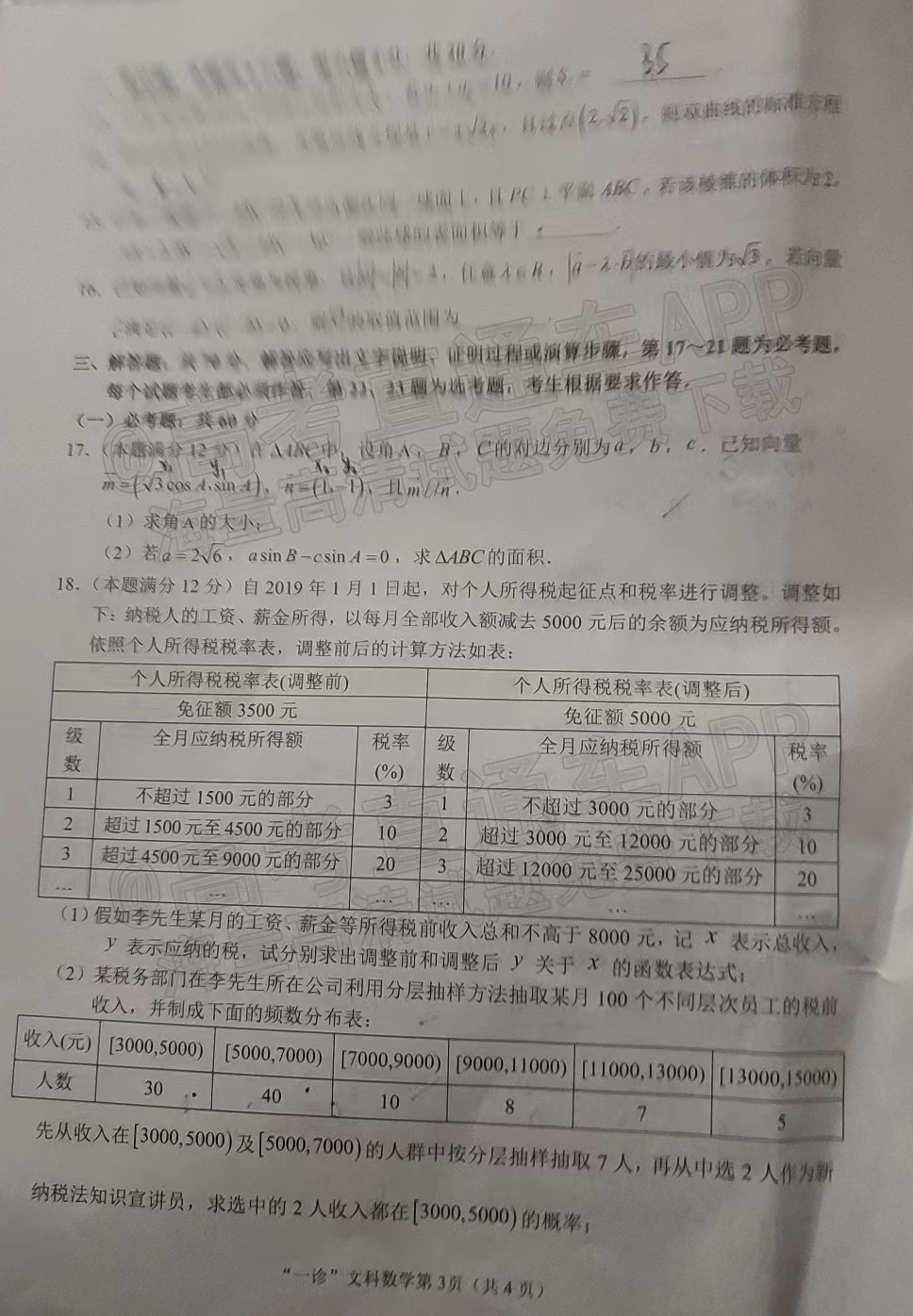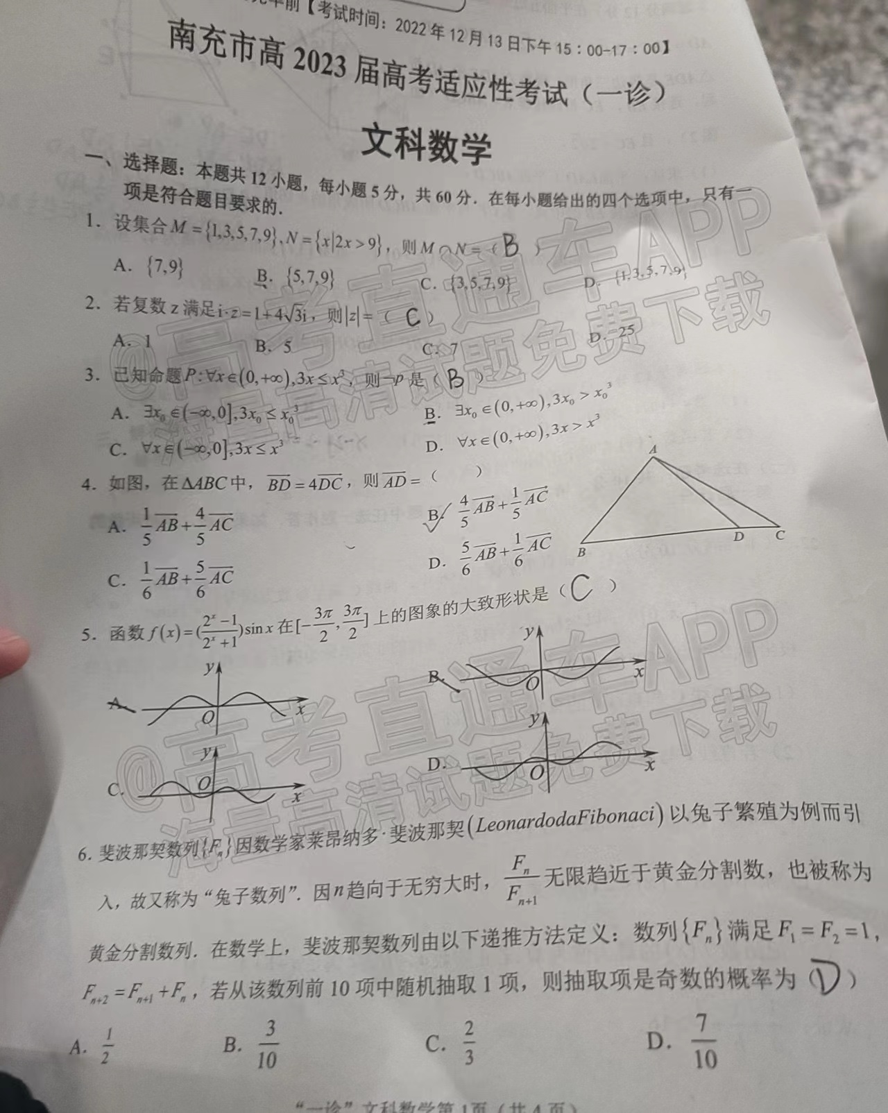 1.2023南充一诊文数试卷详情