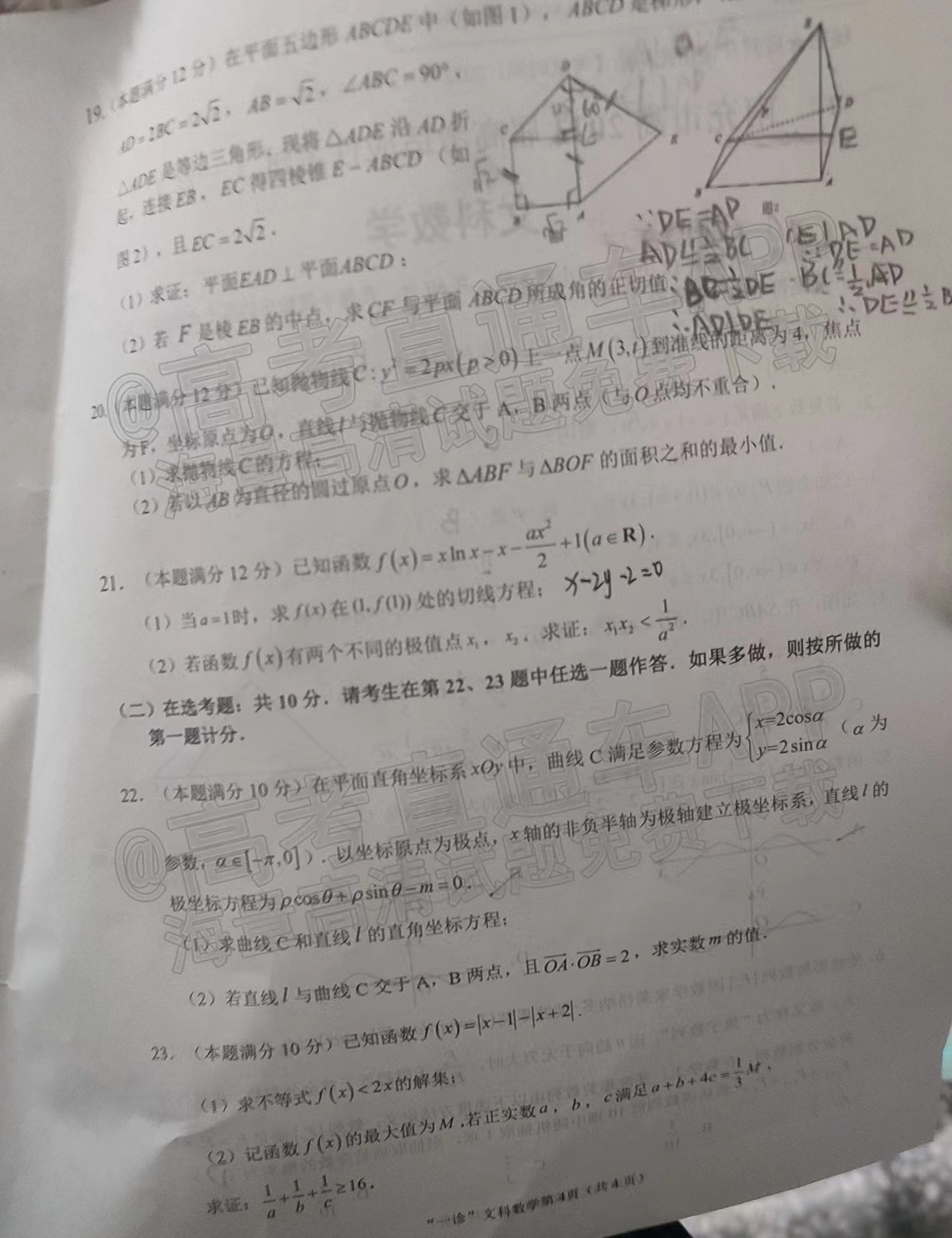 2023南充一诊即将开考,相信考完试之后,同学们都想知道南充一诊各科试卷详情及答案解析汇总。在本文高考100网将会整理2023南充一诊文数试卷详情及答案解析汇总,供同学们参考。希望同学们通过这份资料,对成绩进行评估后,进行查漏补缺,从而更好达到诊断考试的作用!