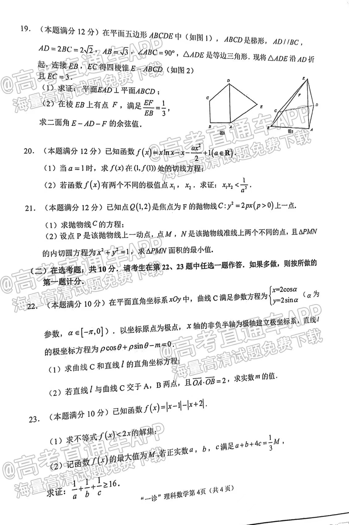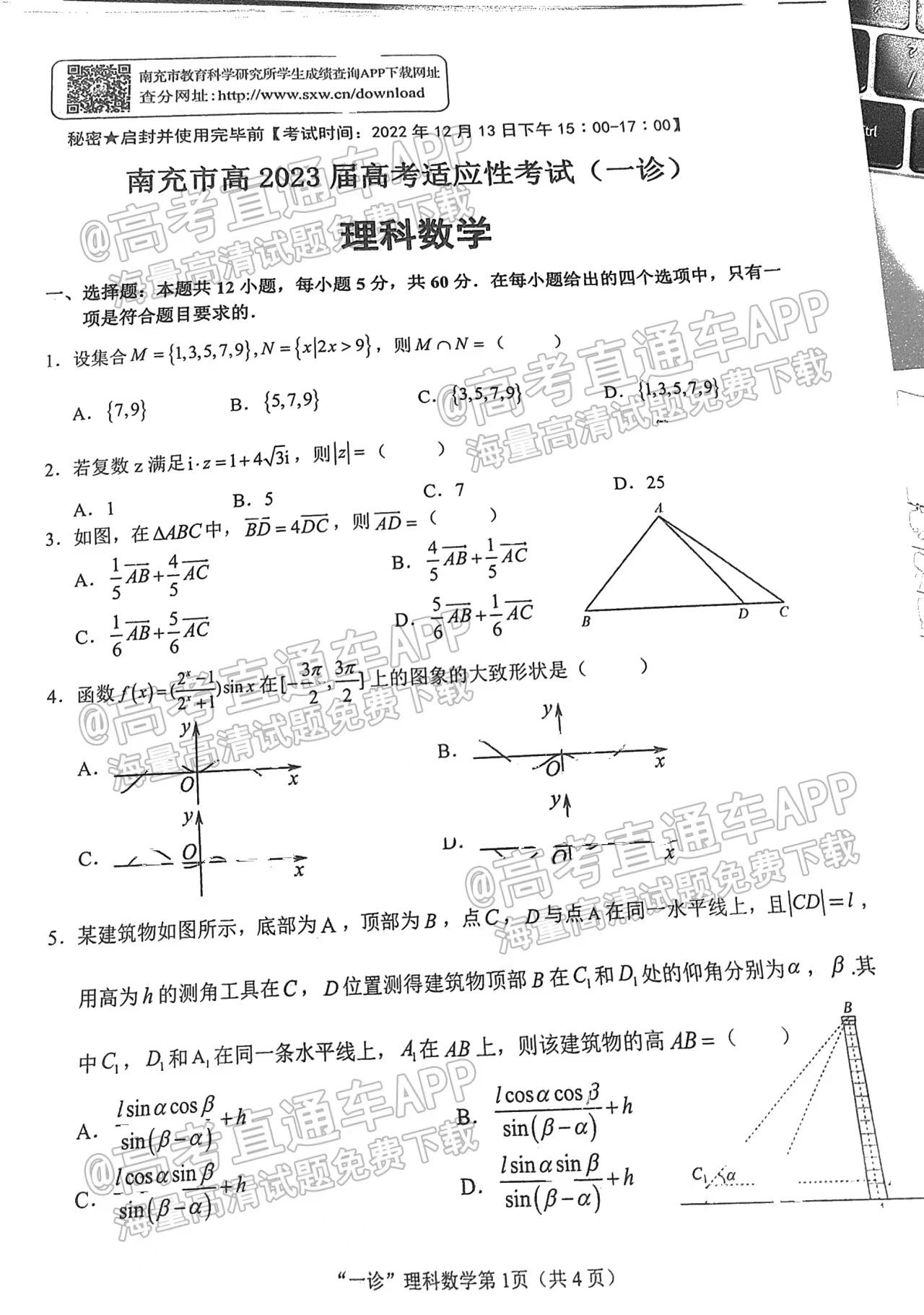 1.2023南充一诊理数试卷详情