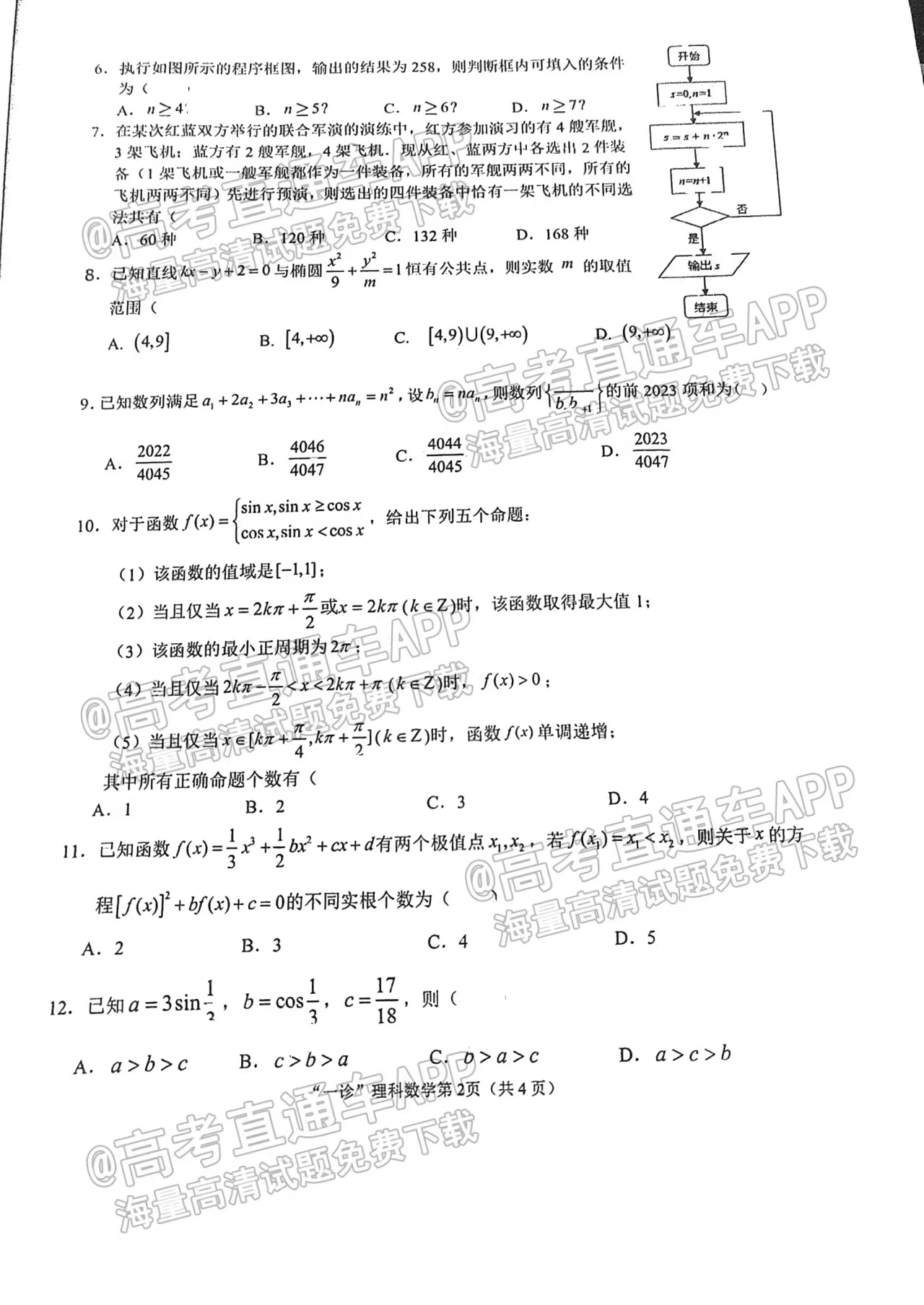 2.2023南充一诊理数答案解析