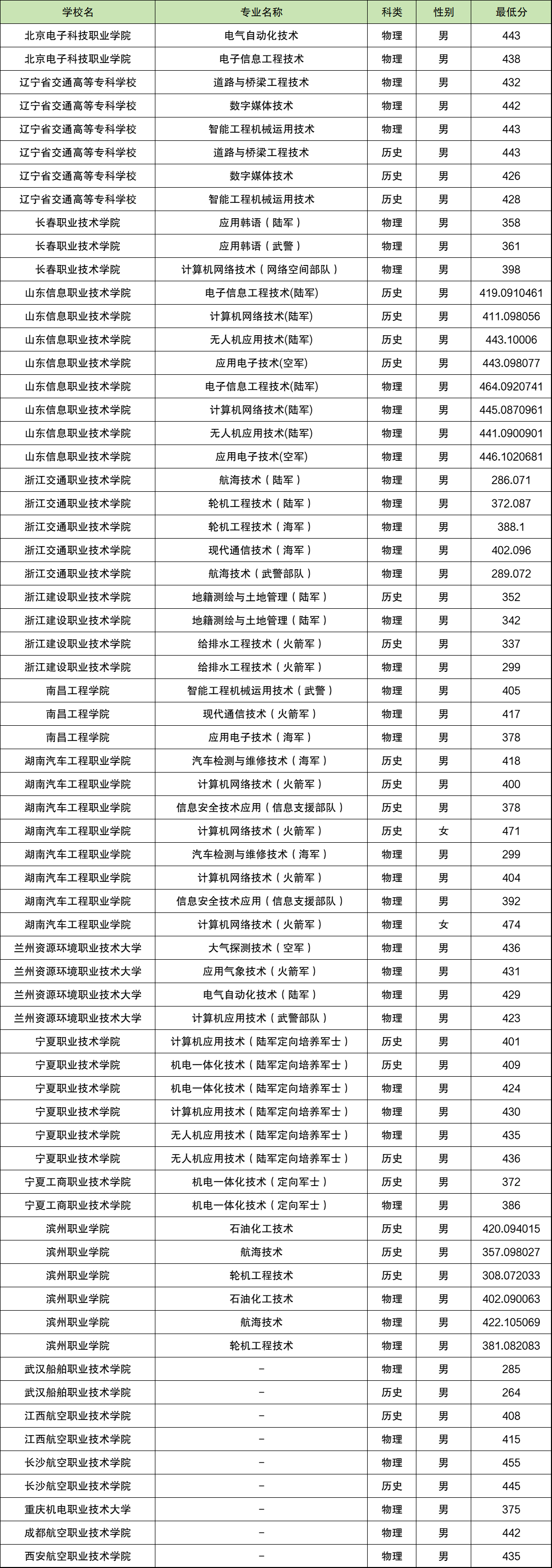 目前仅有部分院校公布了在河北招收定向士官生的分数线,各院校定向士官在河北的最低录取分数线如下: