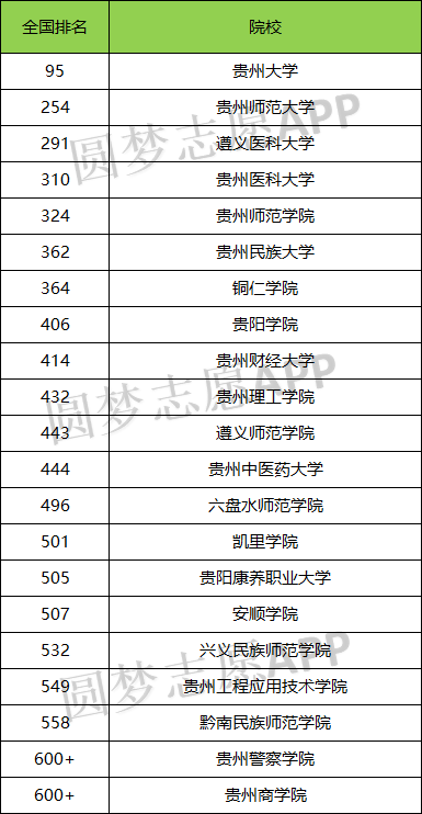 从贵州本科学校中第1名贵州大学、第2名贵州师范大学、第3名遵义医科大学等。本期会介绍贵州所有本科学校名单及排名等内容,方便各位了解贵州本科学校哪个最好,高考需要多少分能上。