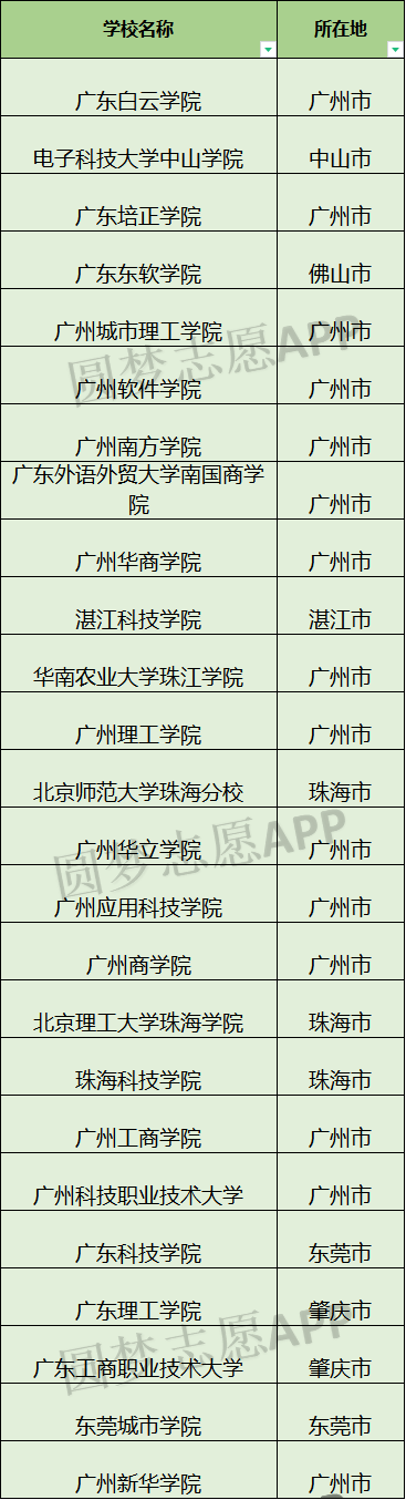 广东所有民办本科院校有广东白云学院、电子科技大学中山学院、广东培正学院、广东东软学院、广州城市理工学院、广州软件学院等25所。