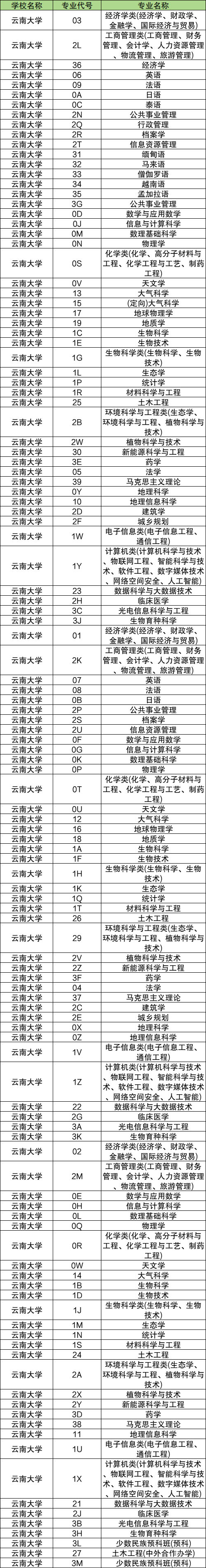 下面是云南大学物理组所有专业代号一览表,供参考: