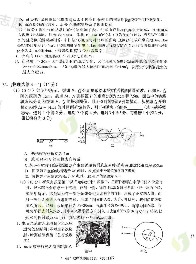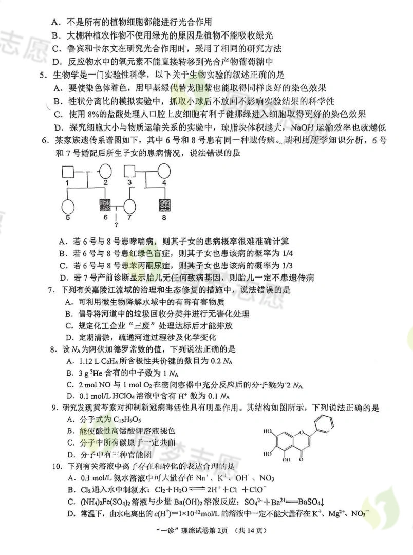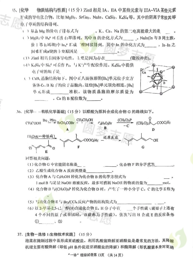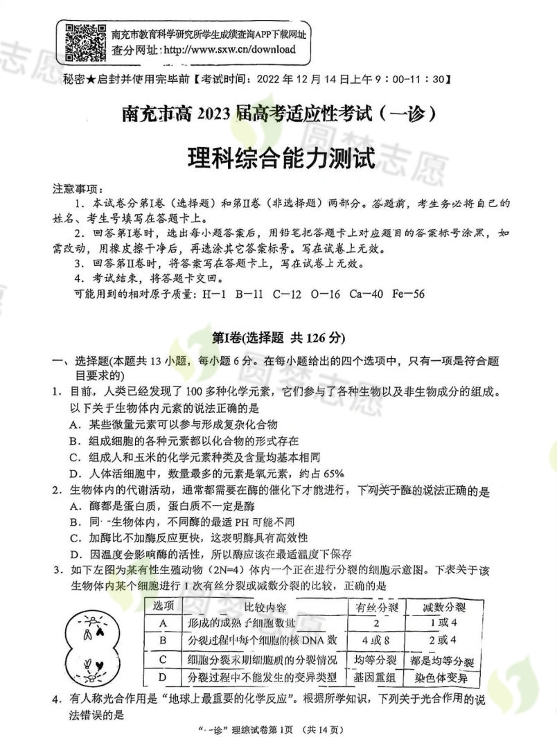 2023南充一诊将于2022年12月13日开考,考试结束后高考100网小编将更新2023南充第一次诊断性考试理综答案及试卷,下文为小编搜集整理的2023南充一诊理综试题及参考答案,供大家参考。