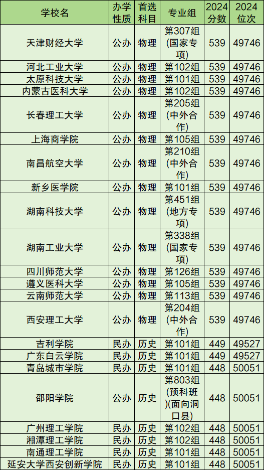 湖南首选历史科目5万名左右的同学能够报考的大学有吉林学院(第101组)、邵阳学院(第803组)、广州理工学院(第102组)邓,历史类5万名左右只能上大概率只能上民办本科,对应分数是448分到449分。