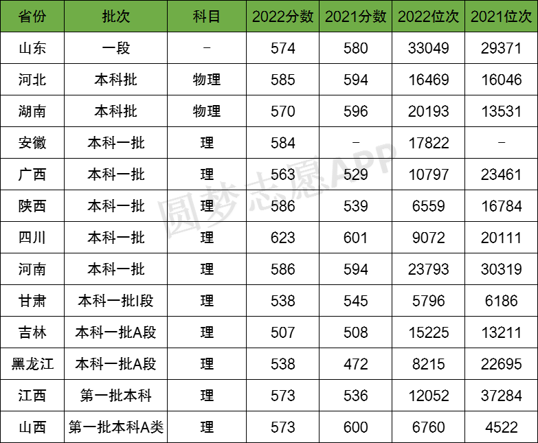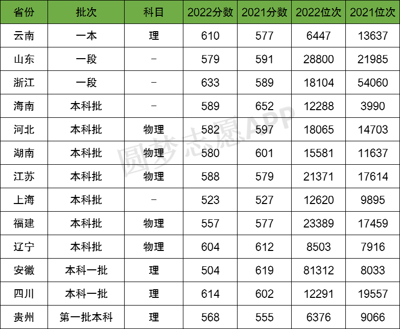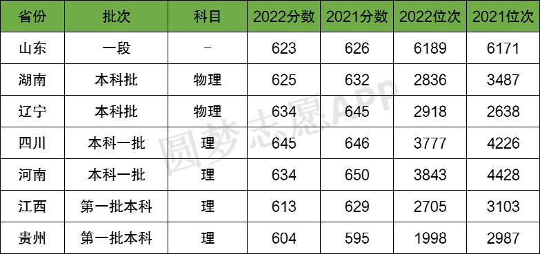 1、2022年(在以下普通省份招收无军籍学员)