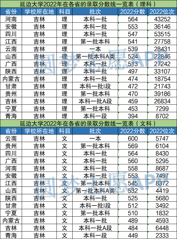 二、延边大学2022年在各省的录取分数线一览表(2023参考)