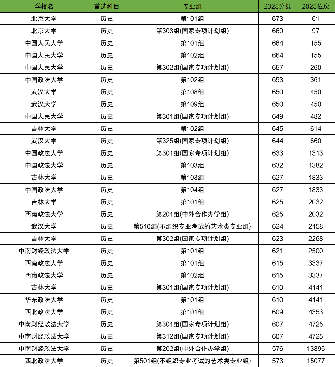 以2025年河南省高考为例,西北政法大学物理类最低610分、历史类最低573分;中南财经政法大学物理类最低584分,历史类最低576分。