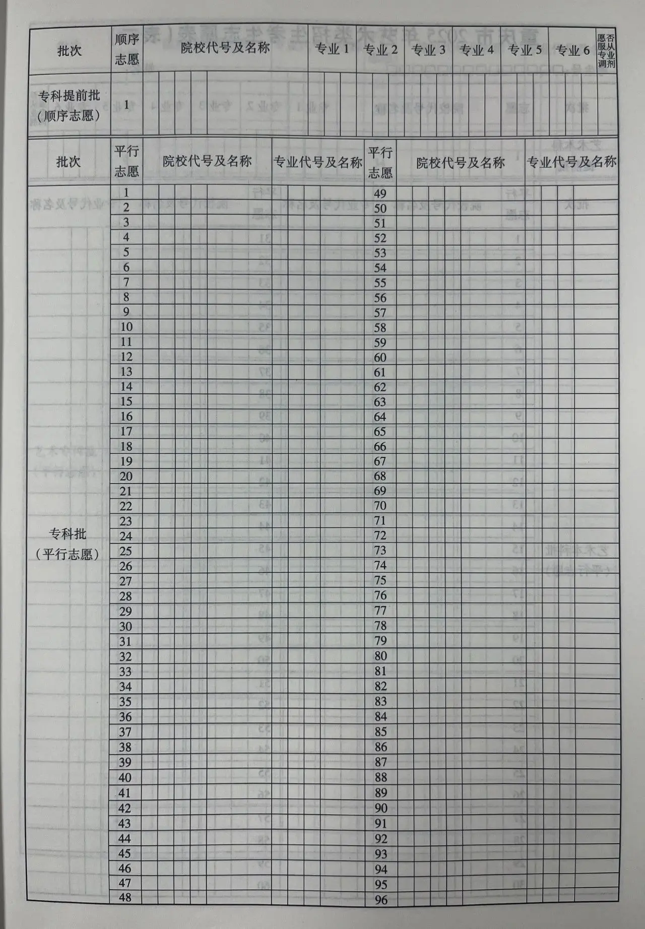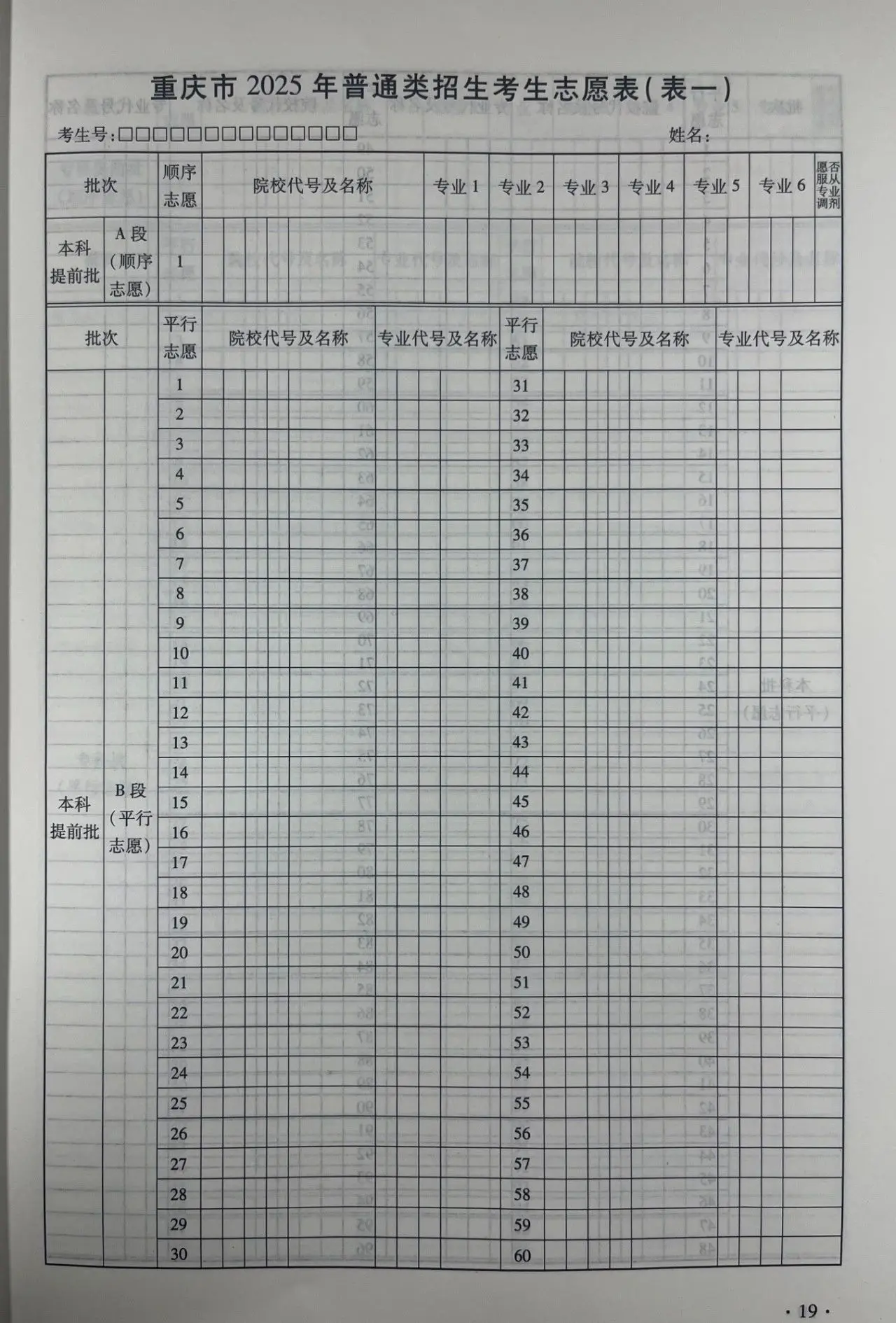 二、重庆新高考志愿填报表真实模板