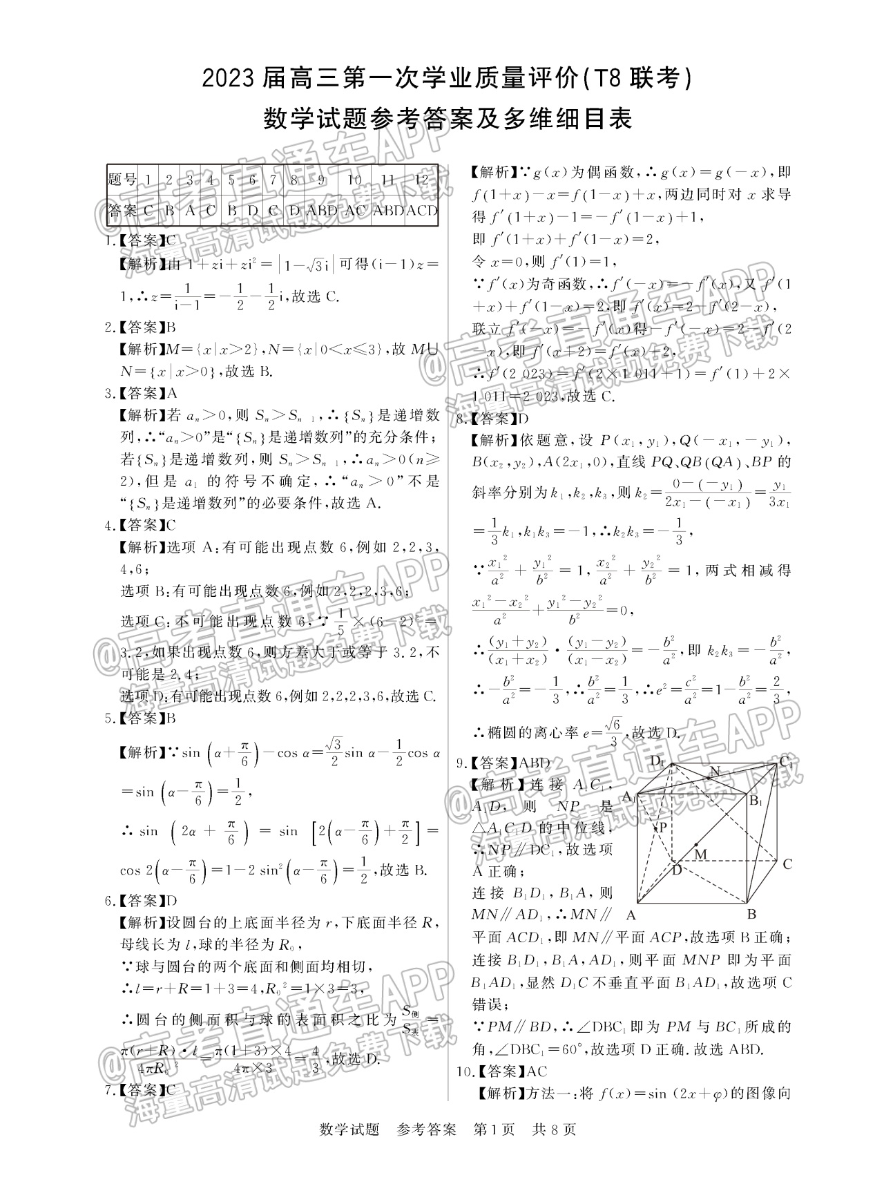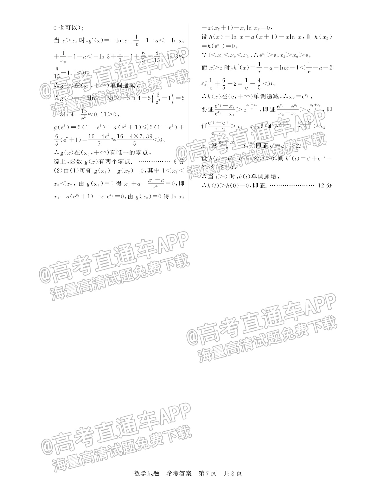 二、2023湖南炎德英才(t8联考)高三12月联考数学试卷及答案