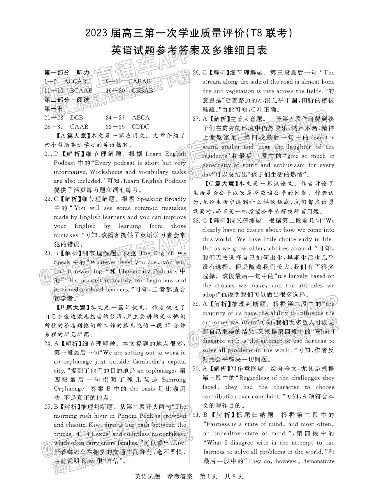 三、2023湖南炎德英才(t8联考)高三12月联考英语试卷及答案