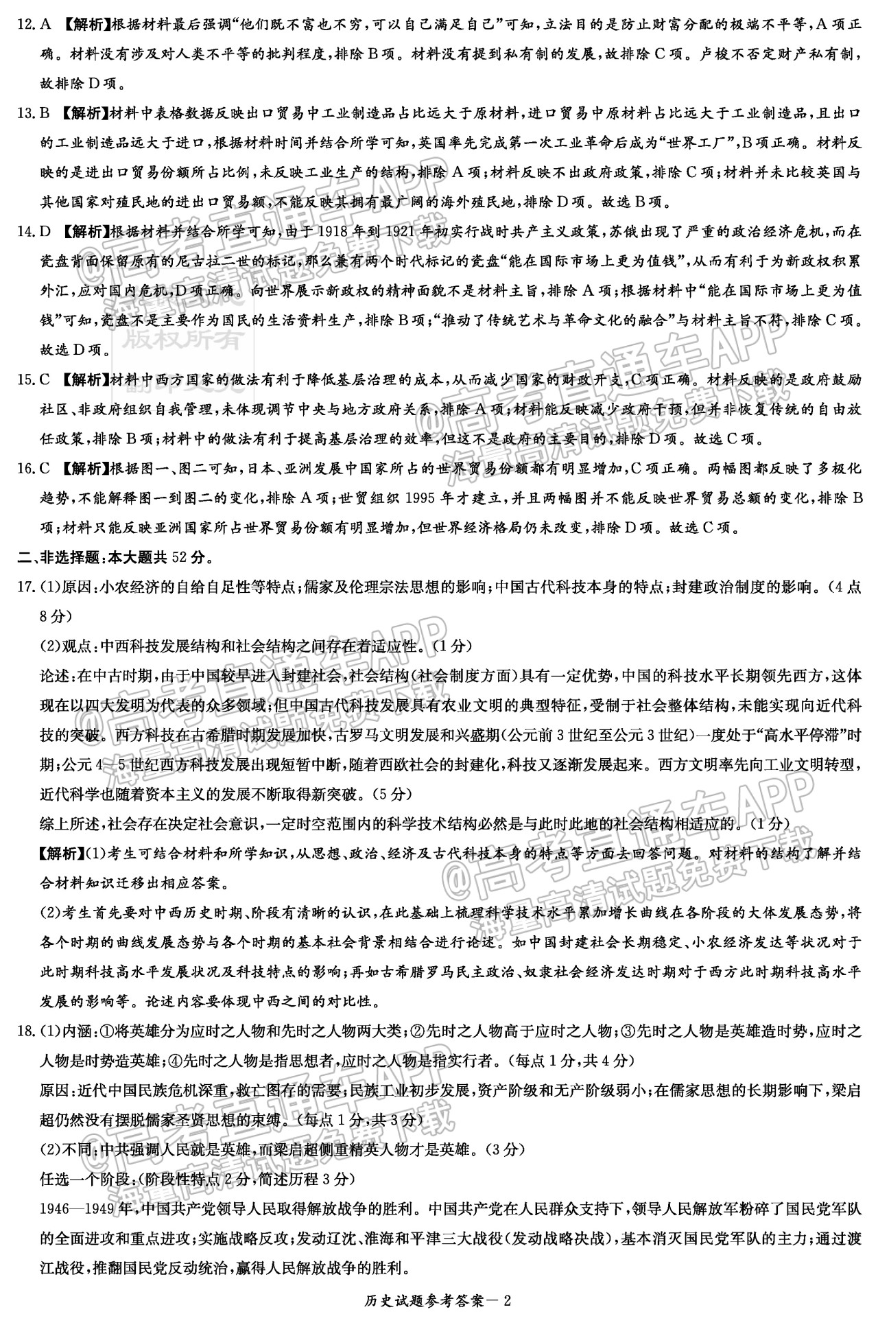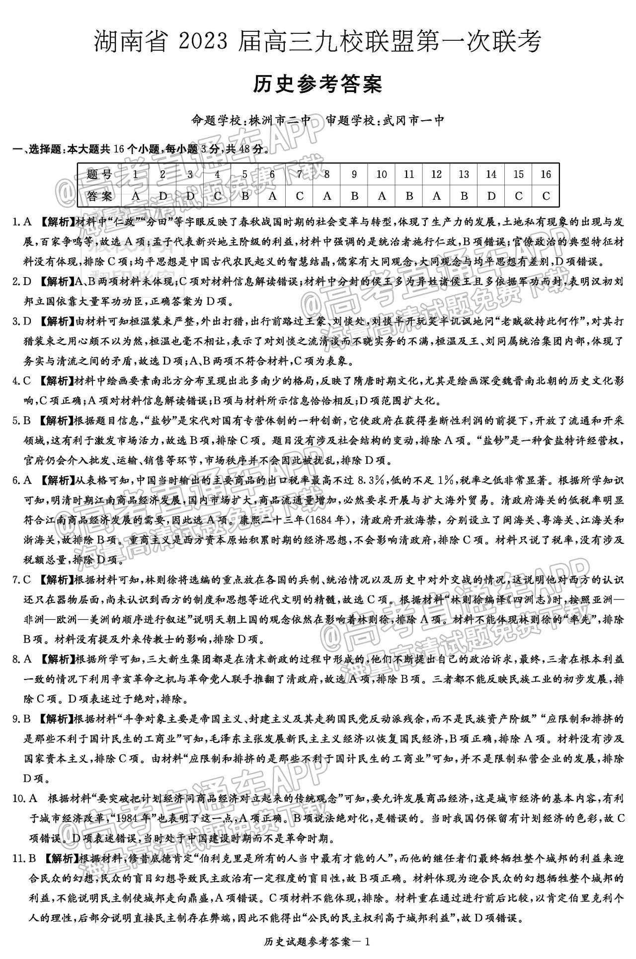 五、2023湖南炎德英才(t8联考)高三12月联考历史试卷及答案