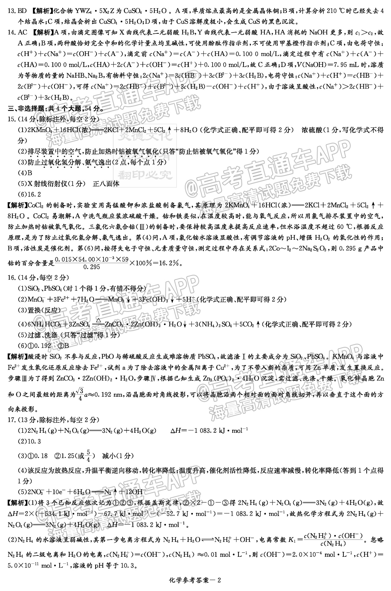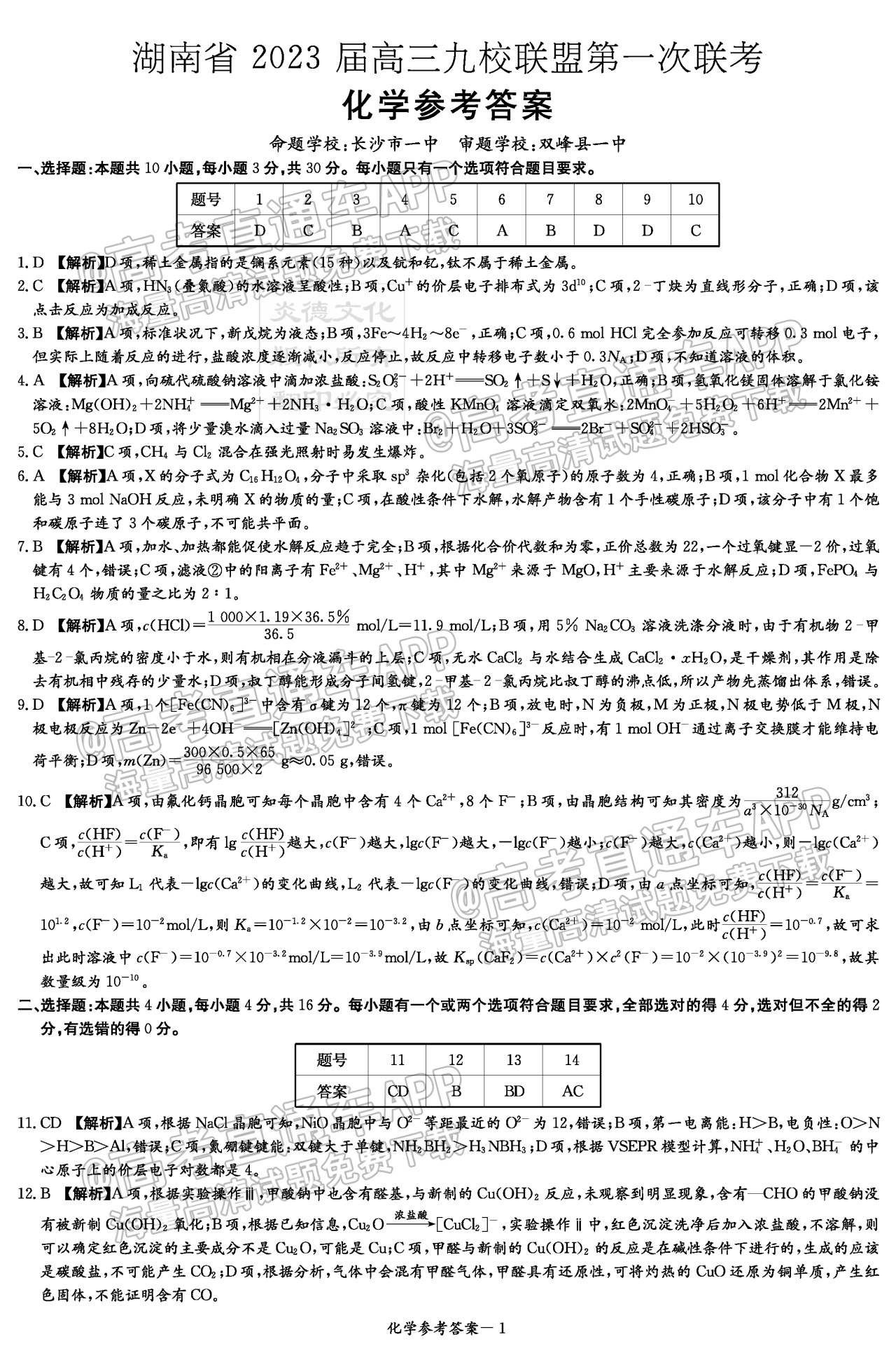 八、2023湖南炎德英才(t8联考)高三12月联考化学试卷及答案