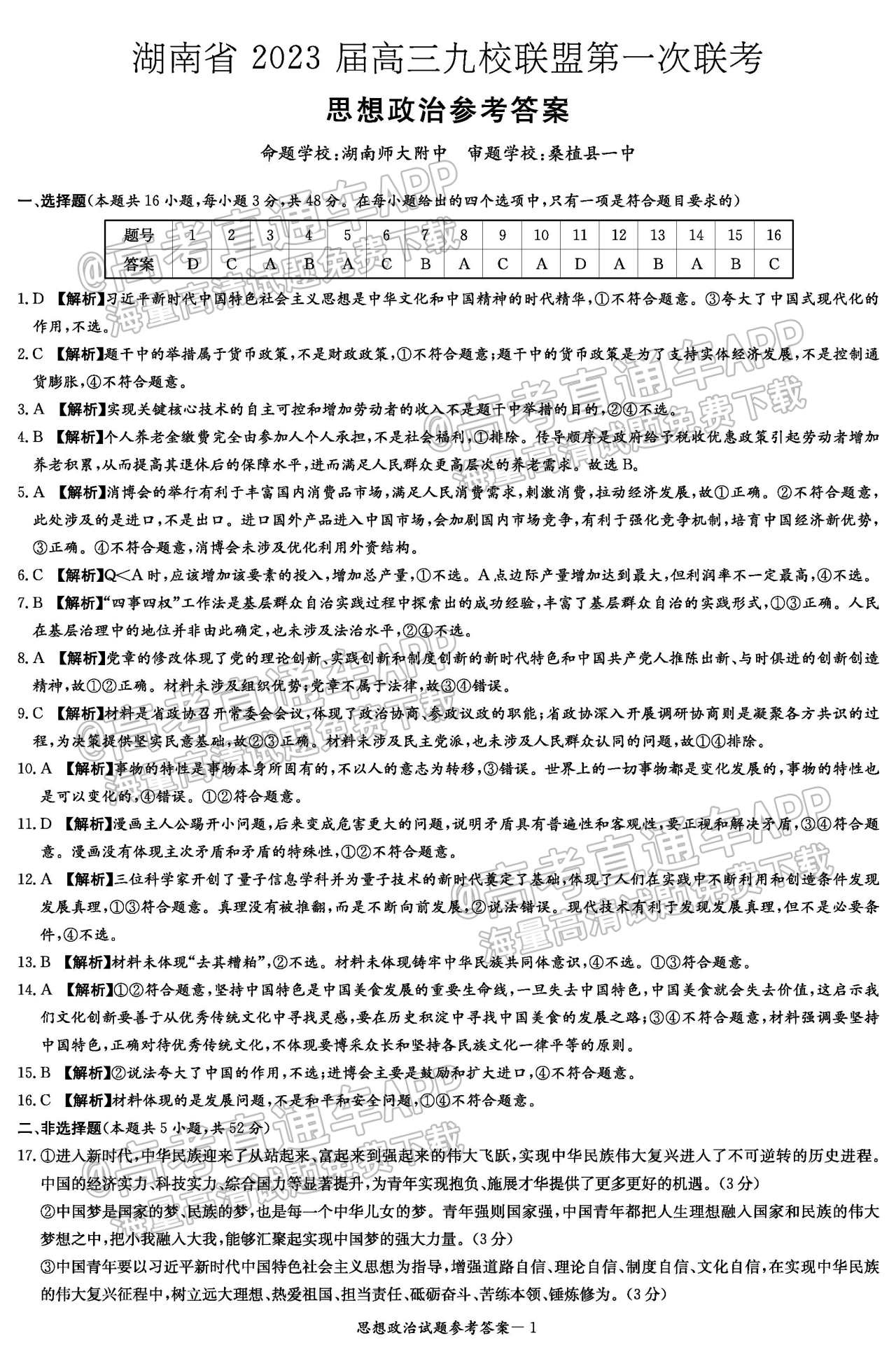 四、2023湖南炎德英才(t8联考)高三12月联考政治试卷及答案