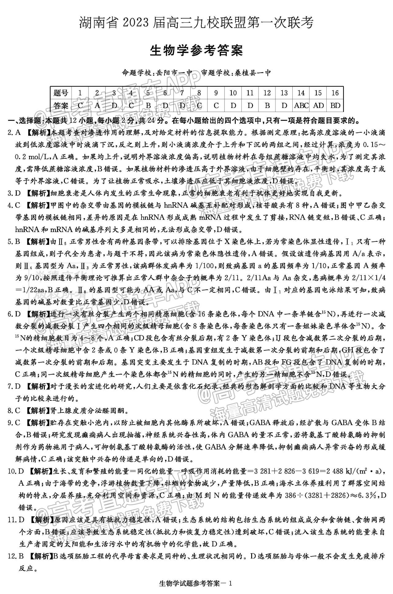九、2023湖南炎德英才(t8联考)高三12月联考生物试卷及答案