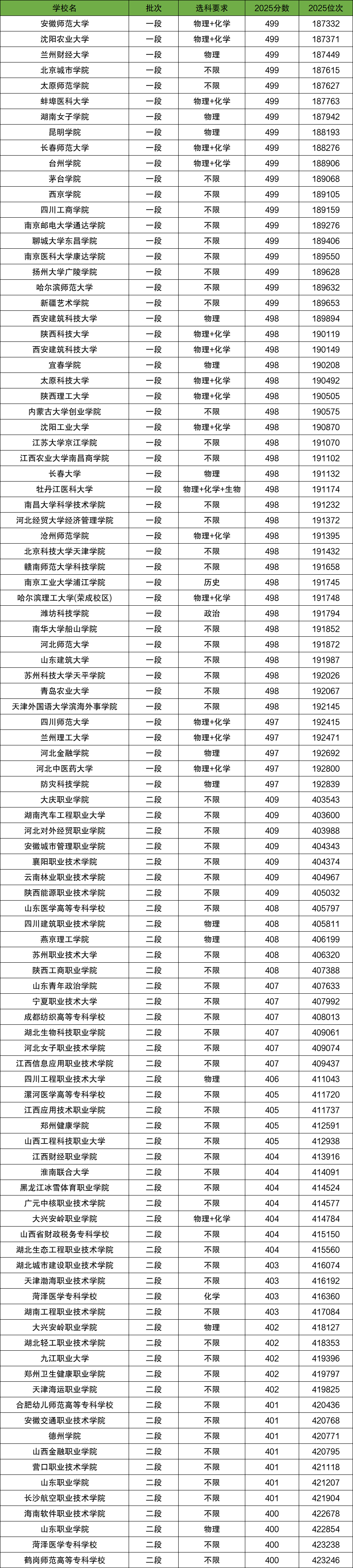 2025年山东高考400~500分的大学一览表如下:(本文篇幅有限,仅列举部分数据)