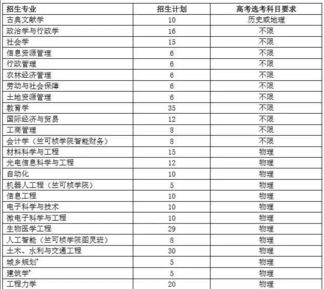 2020年浙江省“三位一体”综合评价招生总计划850名。各专业招生计划、高考选考科目要求如下表所示。