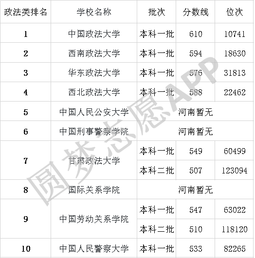 由于每个政法大学在各省的录取分数线都不相同,今天小编就以高考人数最多的河南省为例,为大家整理了2022年全国十大政法大学的录取分数线。