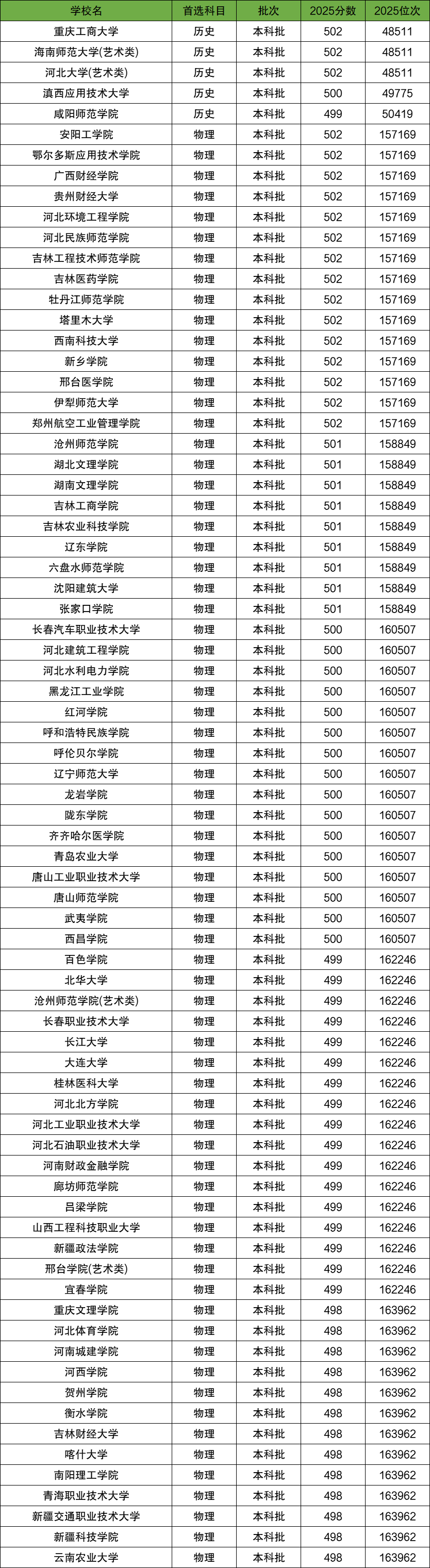 除了上述大学之外还有哪些分数在500分左右,分数不高但不错的好大学呢?下面小编就为大家介绍河北省和山东省2025年500分左右的公办大学名单。