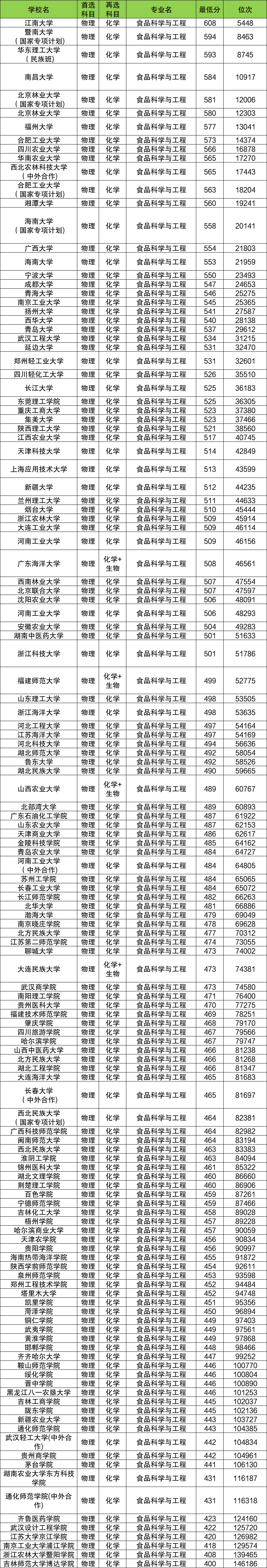 2026年纯文科生不可以报考食品科学与工程专业,不过其他选科可以报考的大学包括福州大学、北京林业大学、广西大学等。下文将展示各专业大学排名及录取分数线汇总,一起来了解下吧。