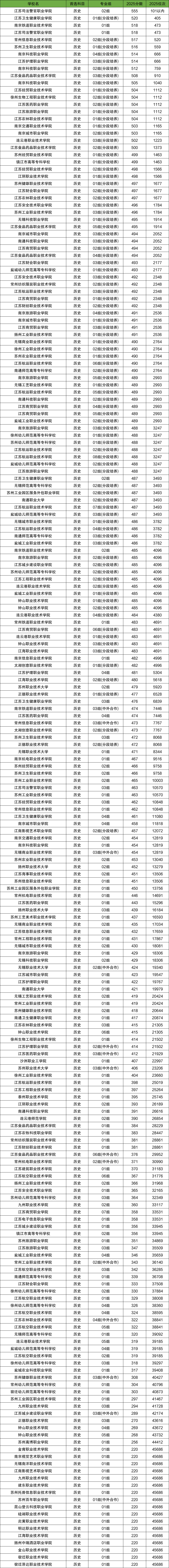 4、江苏2025各校录取分数线排名(历史类专科批)