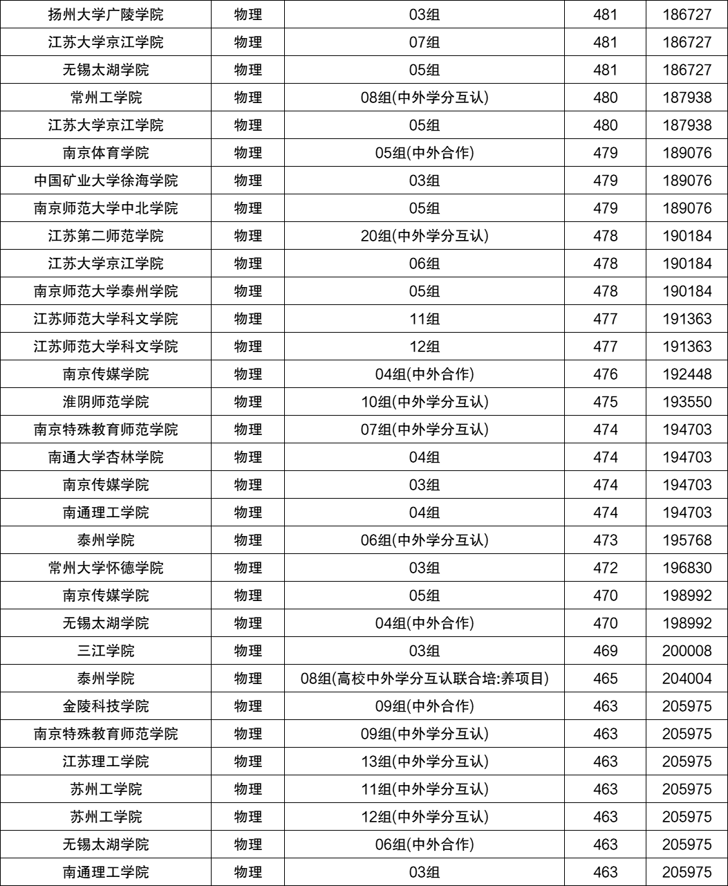 2、江苏物理类本科线:463分