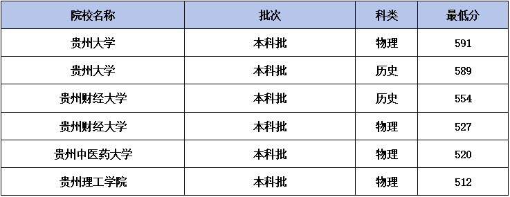 贵州国家专项计划大学名单及录取分数线(滑动查看):