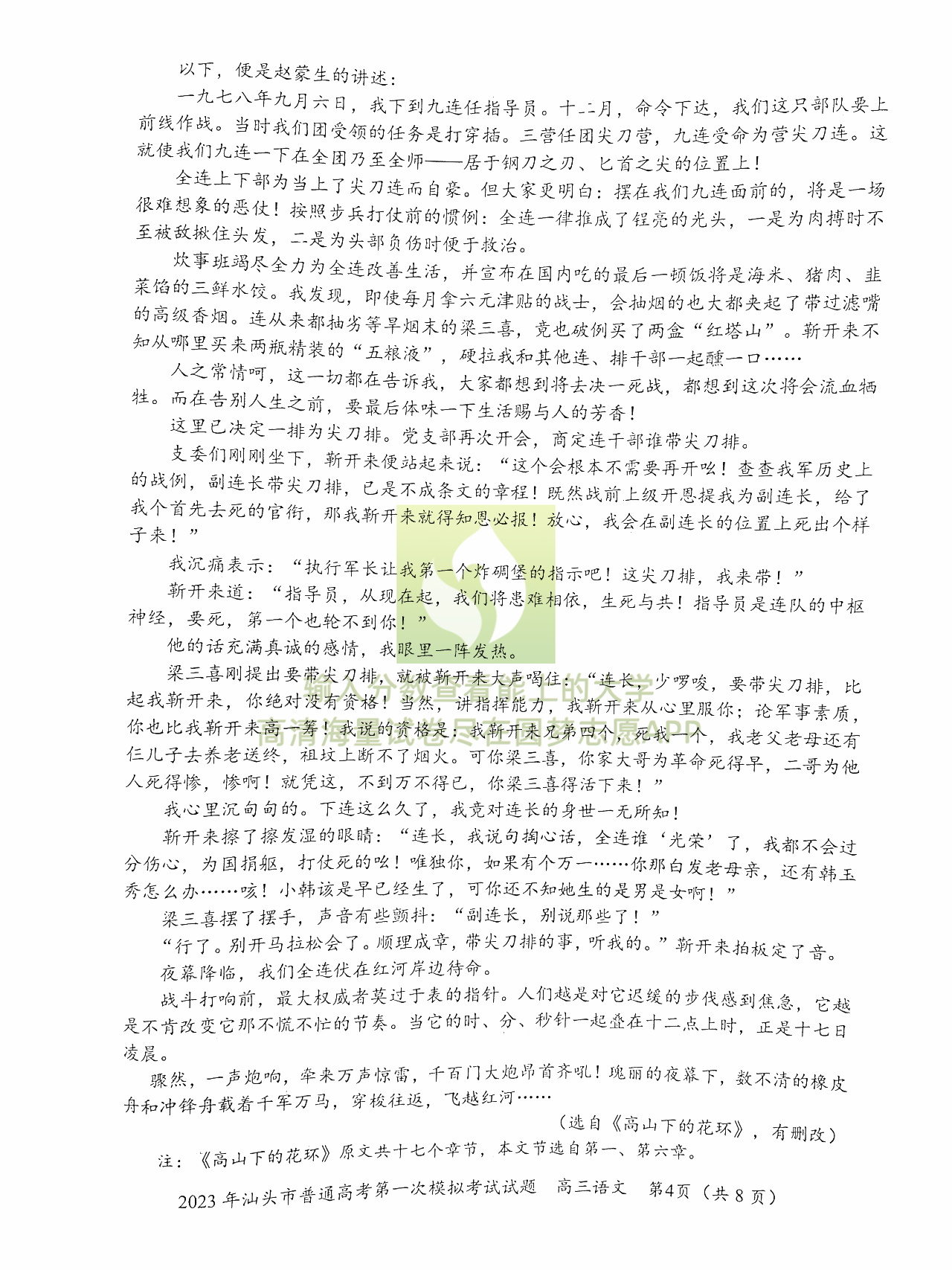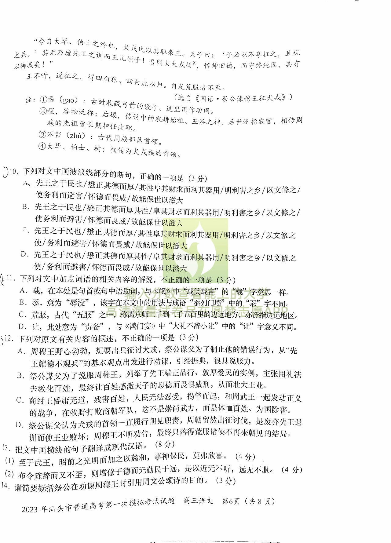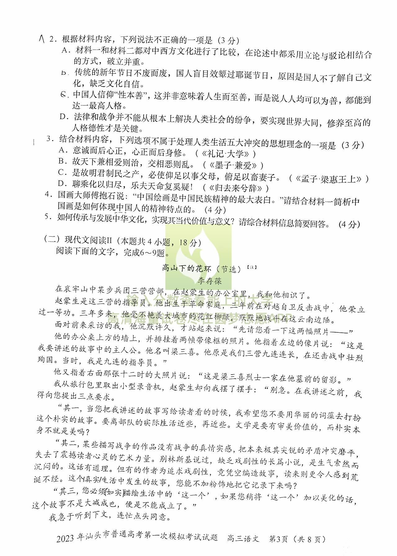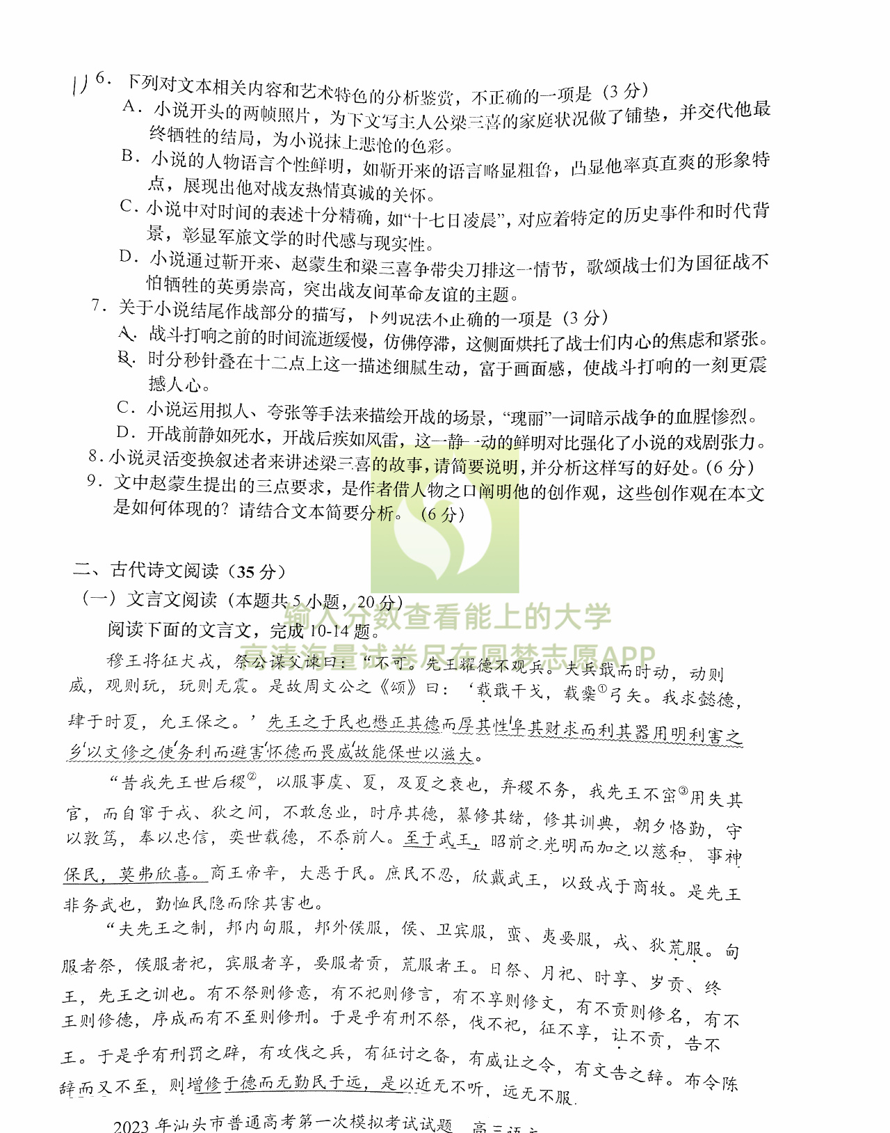 一.2023汕头一模语文试卷真题及答案解析汇总