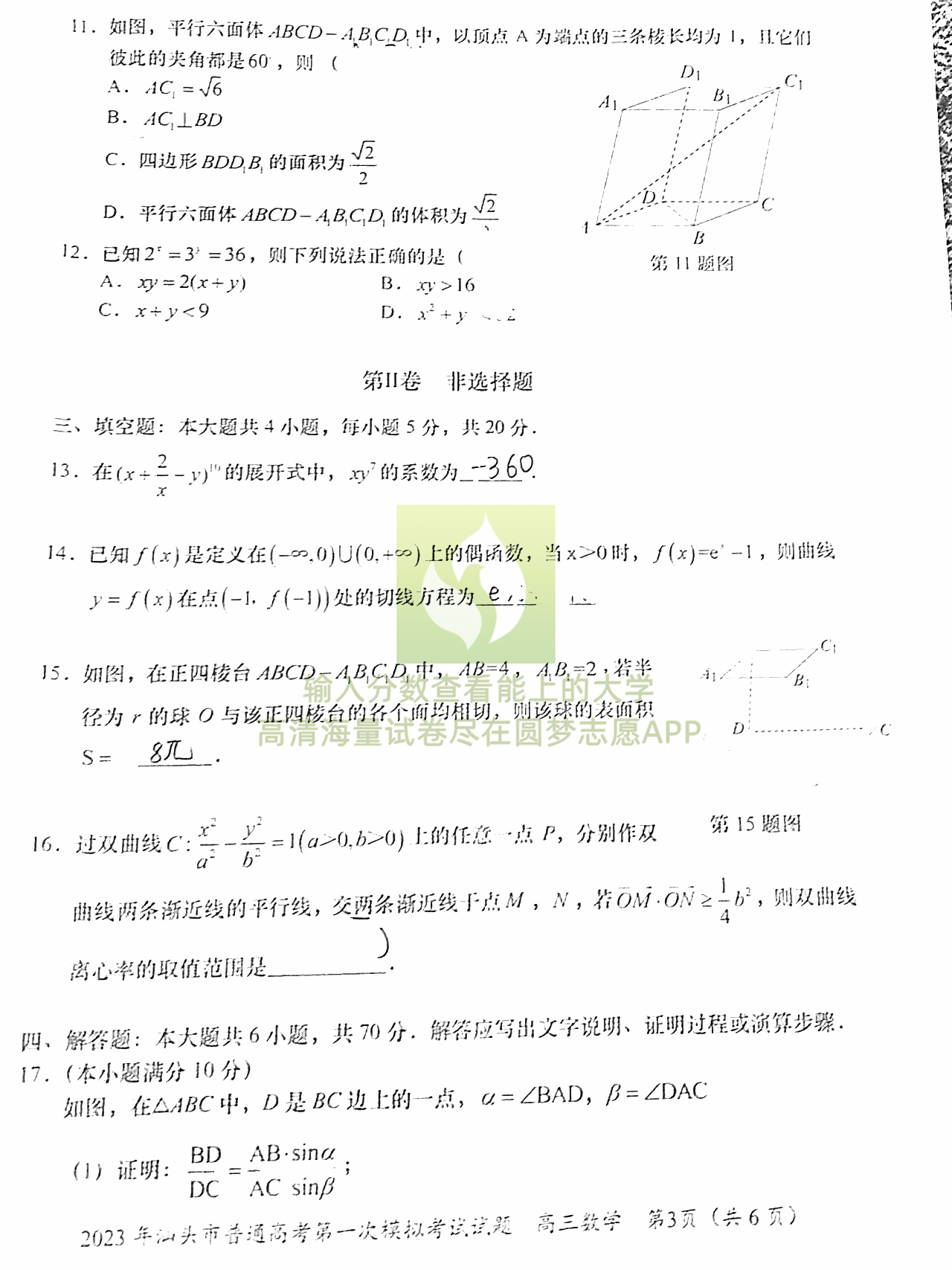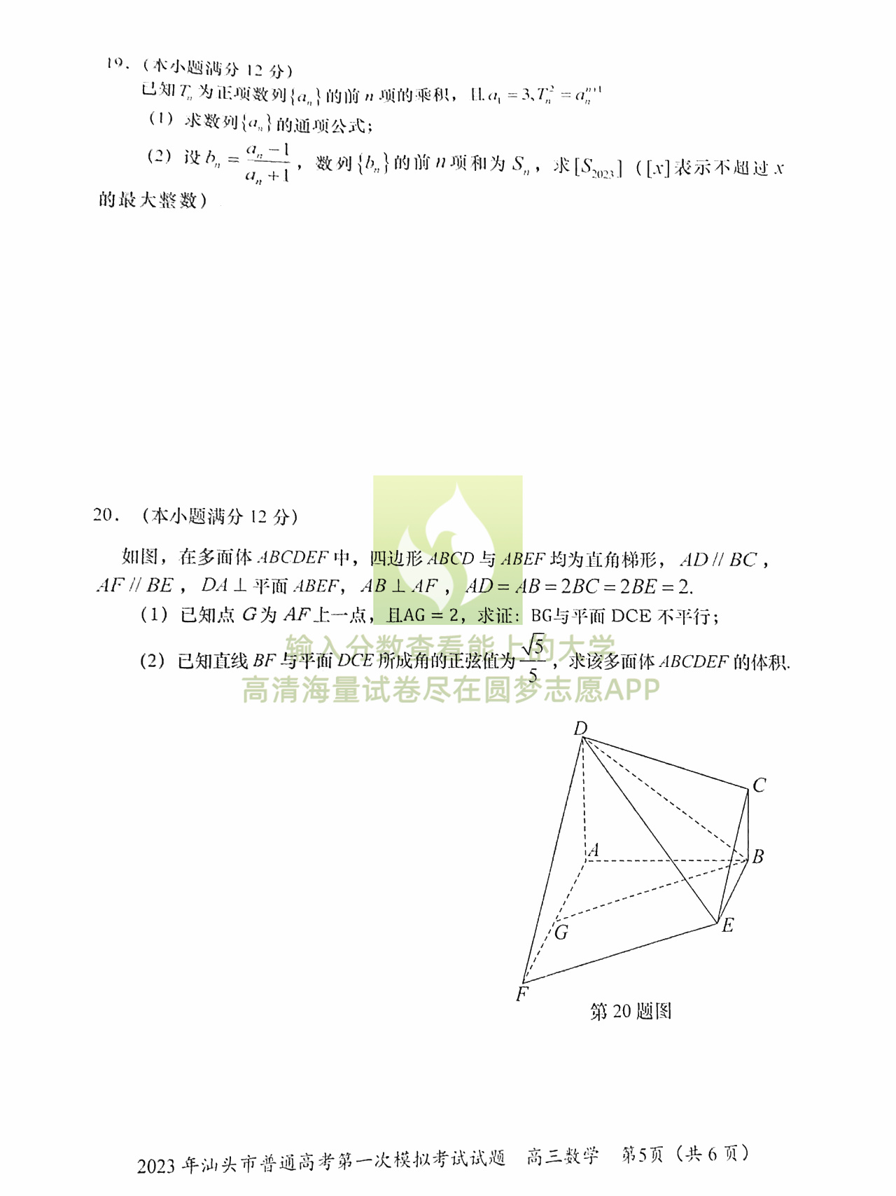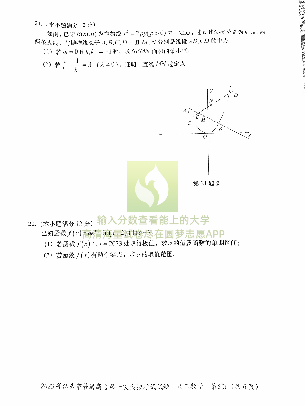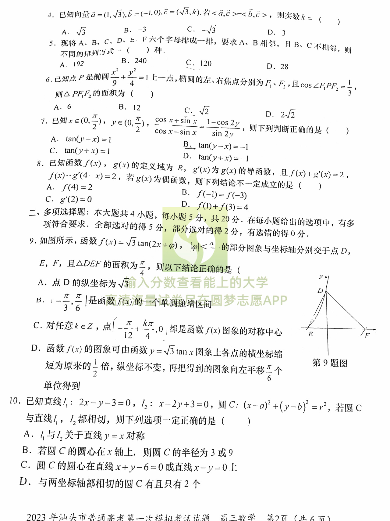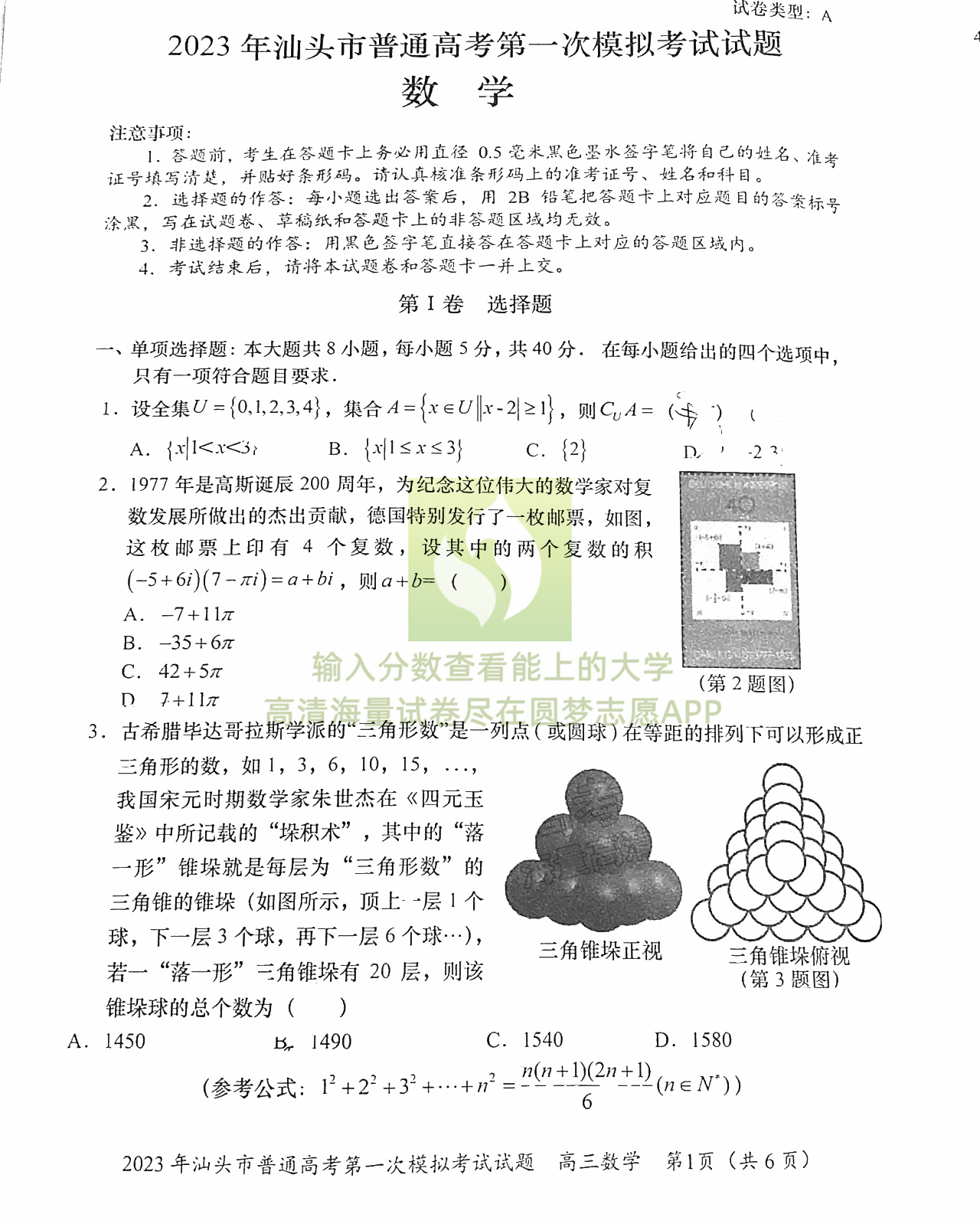 二.2023汕头一模数学试卷真题及答案解析汇总