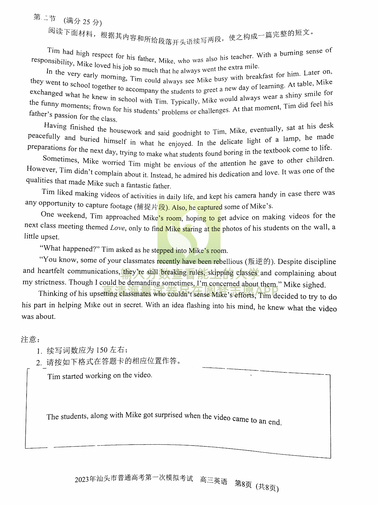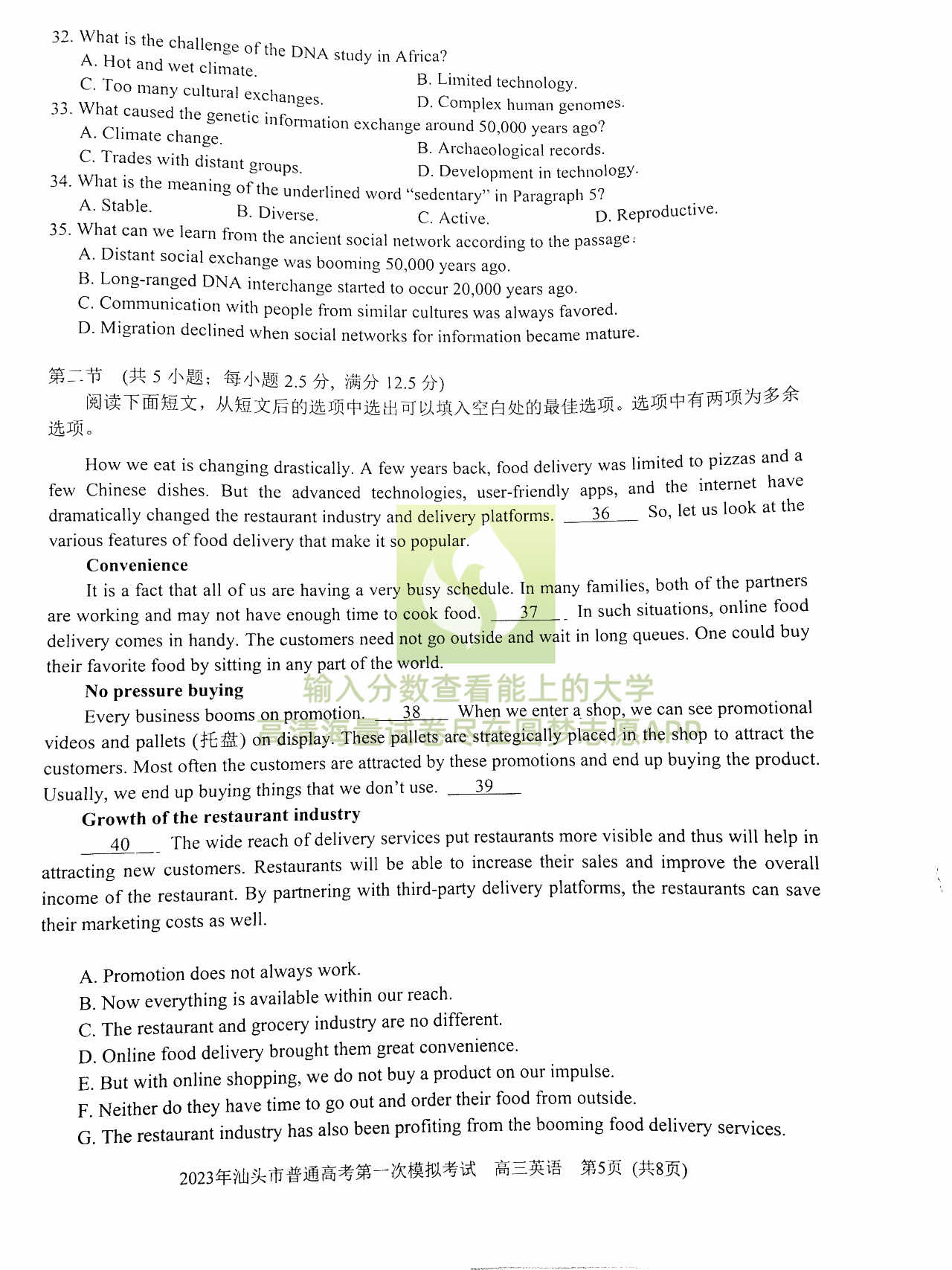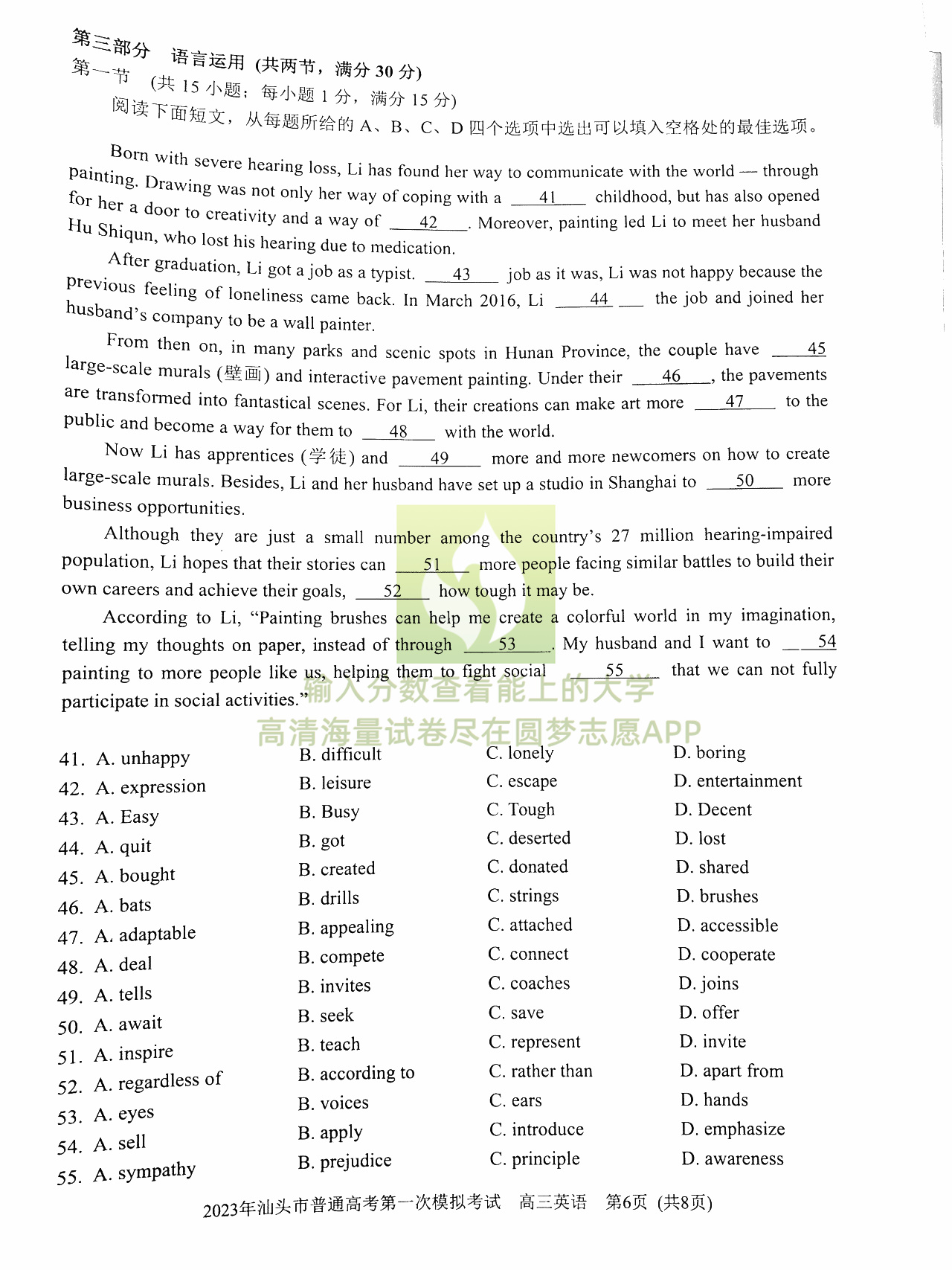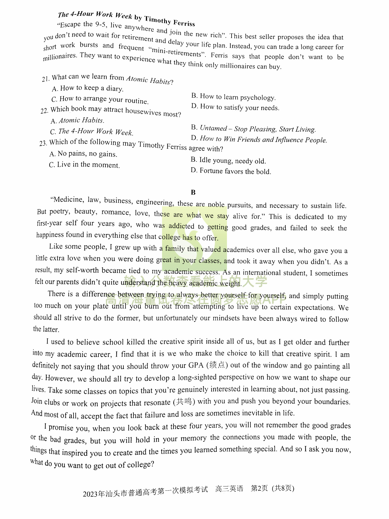 三.2023汕头一模英语试卷真题及答案解析汇总